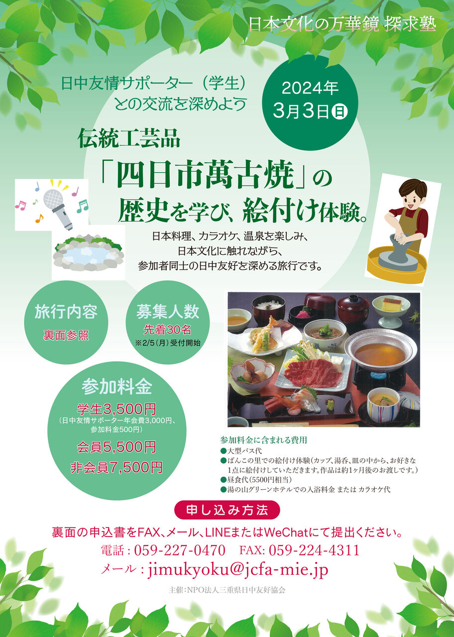 ☆会員向け旅行「四日市萬古焼」参加者募集中☆