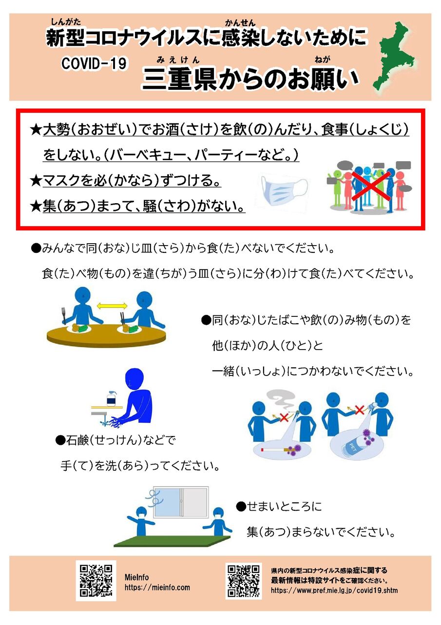 5月三重県からのお願い(会食時の注意事項)