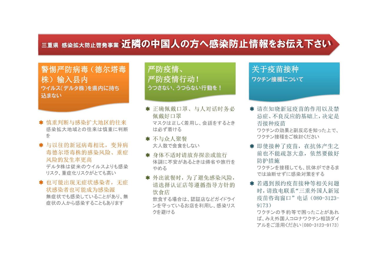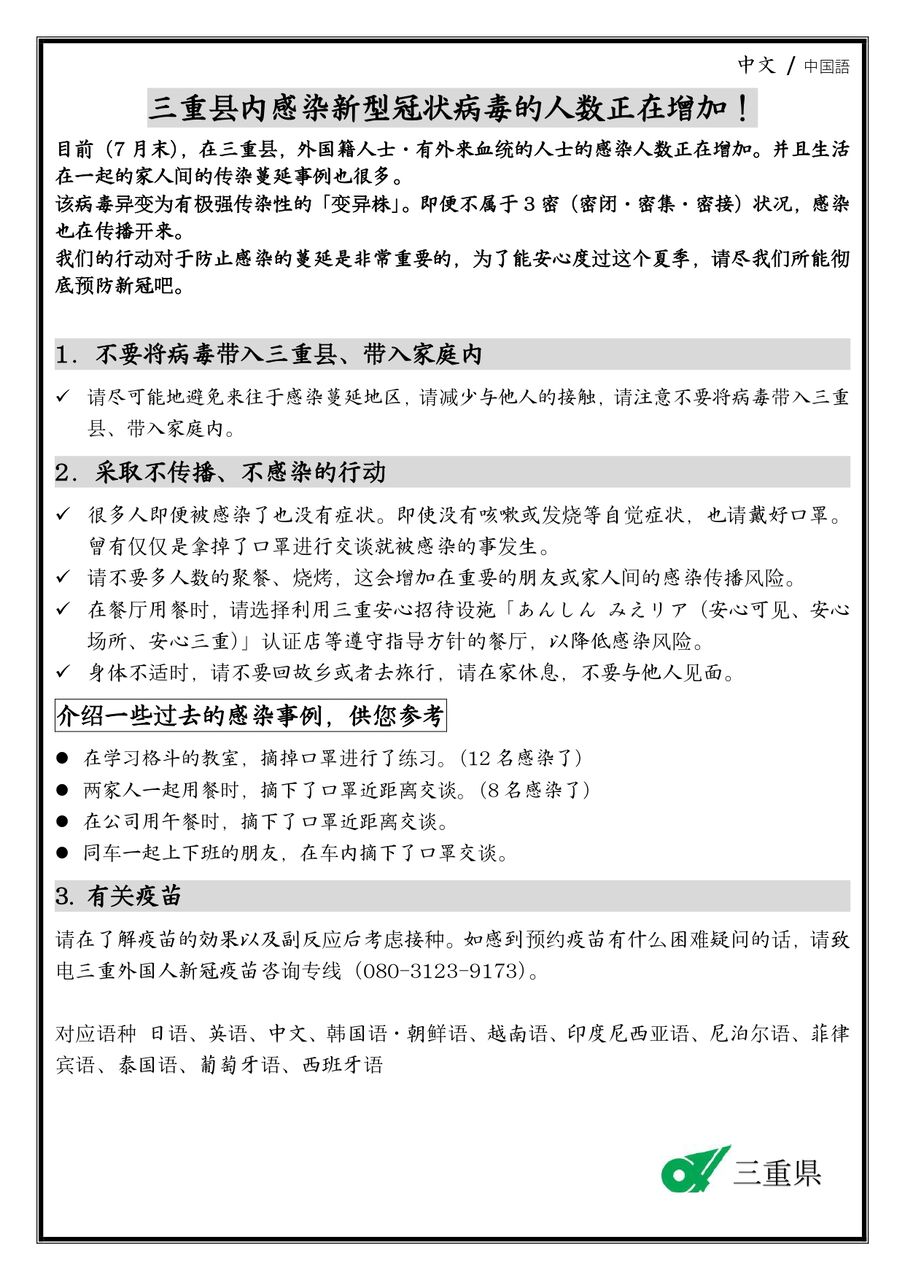 ☆新型コロナウイルスの関連情報を中国人の方へお知らせ下さい - 9月☆