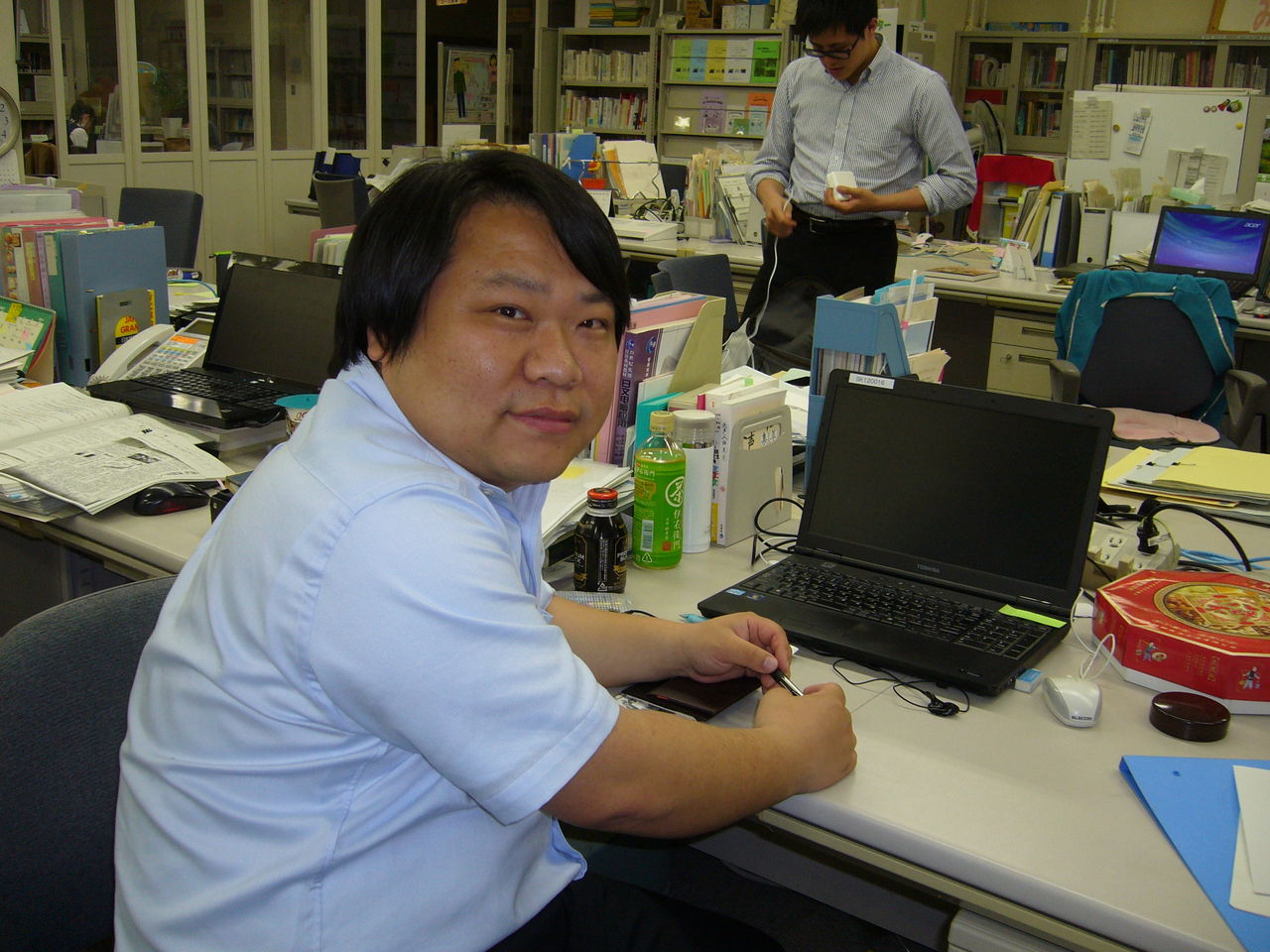 とってもフレンドりーで、癒し系の彼です。下は職場での写真です。