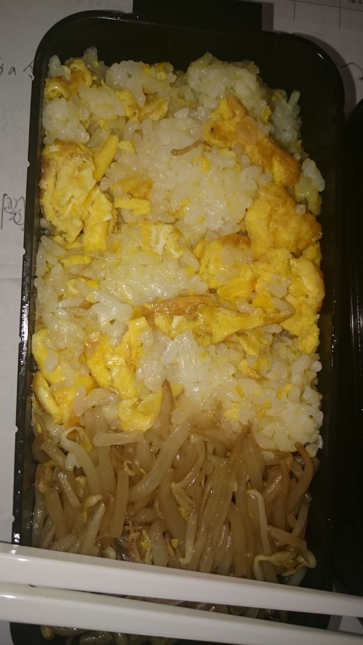 メニューはにんにくの芽と牛肉の炒め物、卵チャーハンの2段弁当です。