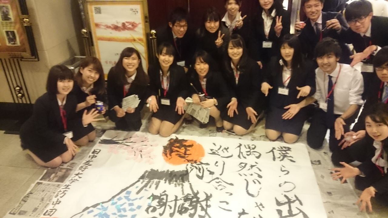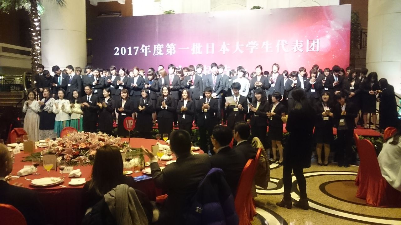 夜の歓迎会では、日中双方のパフォーマンスが披露され、日本人学生は『僕らの出会いは偶然じゃない』とその場で書道パフォーマンスを披露。今回の訪中で出会った全ての人への感謝を表現した。