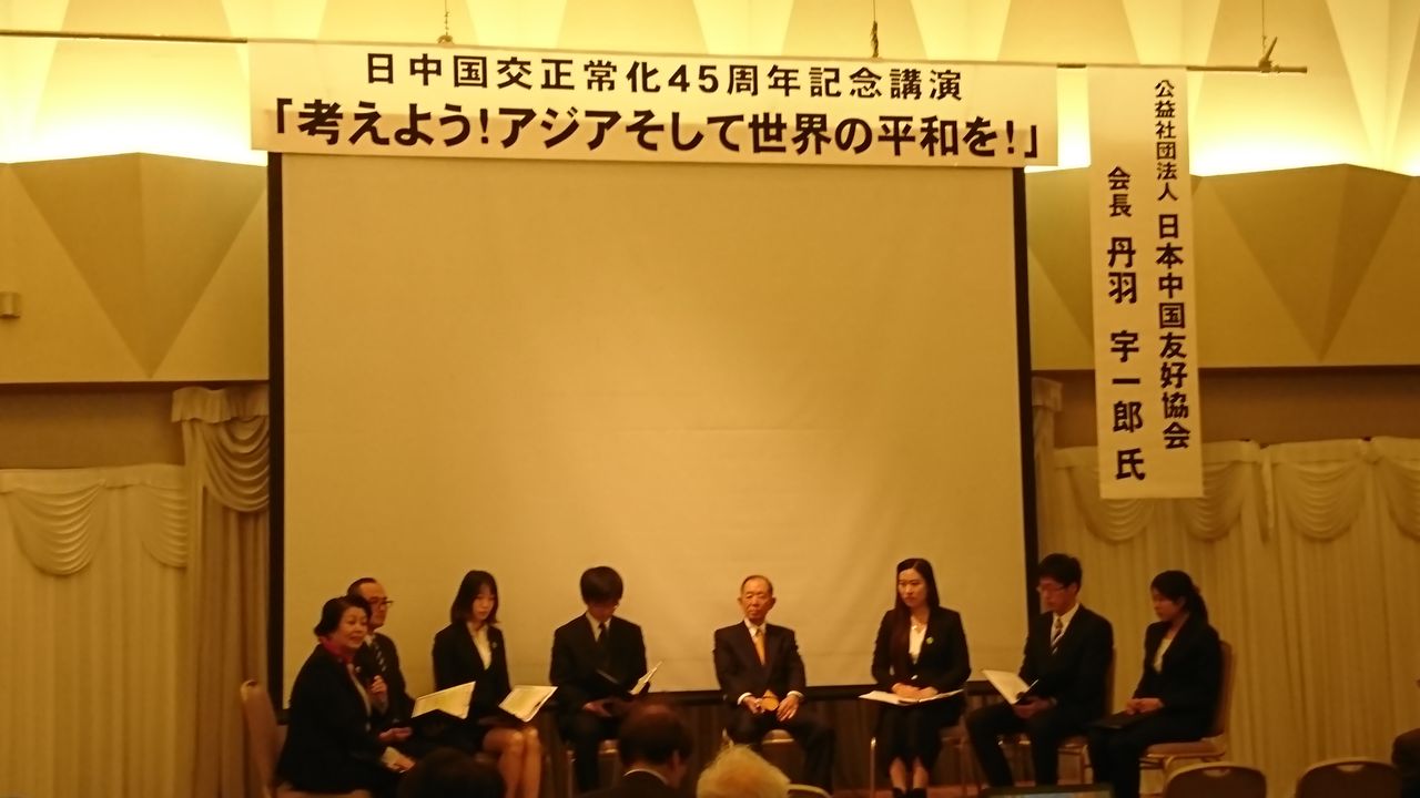 小西凌さんが「戦争を学ぶ方法を教えて下さい」と丹羽会長に質問すると、丹羽会長は「体験者の話を聞くことや本読んだり、戦争の歴史に興味をもって欲しい」と返答した。陳婉秋さんや万華さんは日本の印象として、ゴミの分別にびっくりした事などを述べ、南部陽香さんは「尖閣諸島や大気汚染といったイメージしかなったが、実際に中国人の学生と話すと礼儀を重んじる人たちだと感じた」と述べた。