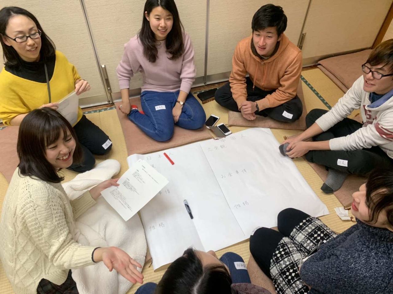 お題について、日中両国の意見を出し合い、最後に全体で発表しました。