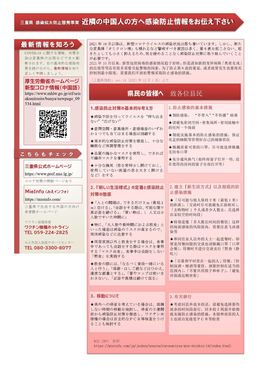 ☆新型コロナウイルスの関連情報を中国人の方へお知らせ下さい - 12月☆