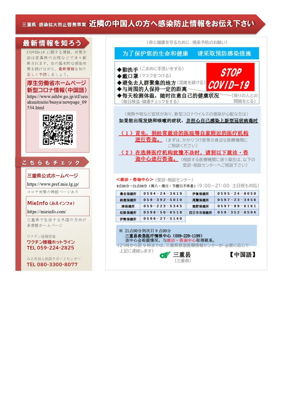 近隣の中国人の方に、新型コロナウイルス感染症に関する情報を広めてください。