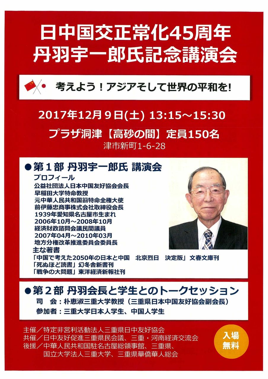 三重大学のご協力を得て、両国の未来を担う新しい世代の皆さんに参加いただき、講演に引き続き、トークセッションと日中友好青年共同アピールを予定している。