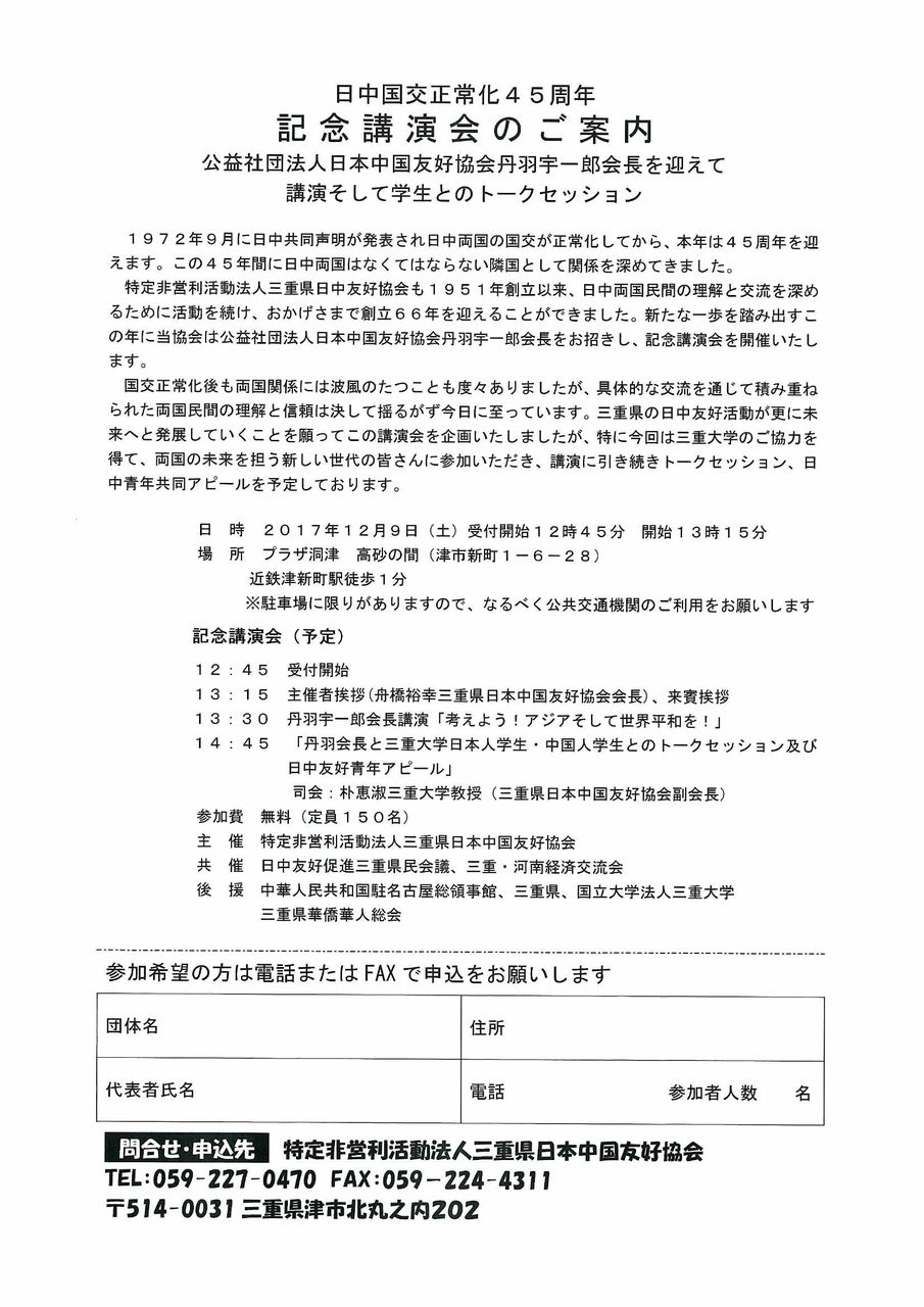 三重県の日中友好活動が更に未来へ発展していく契機となるよう、ひとりでも多くの方のご参加をお待ちしています。詳細は別紙チラシを参照ください。