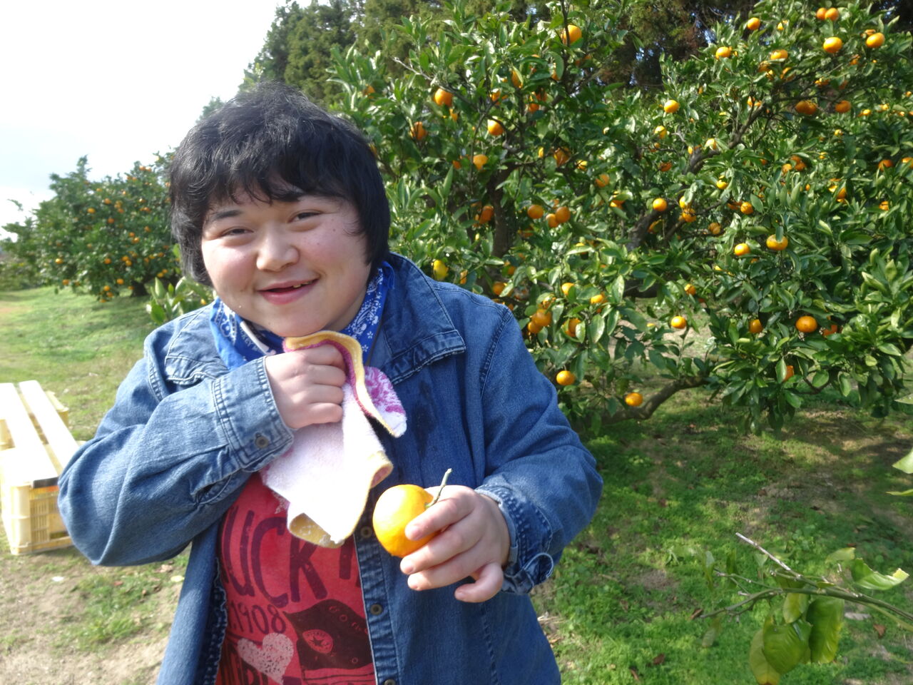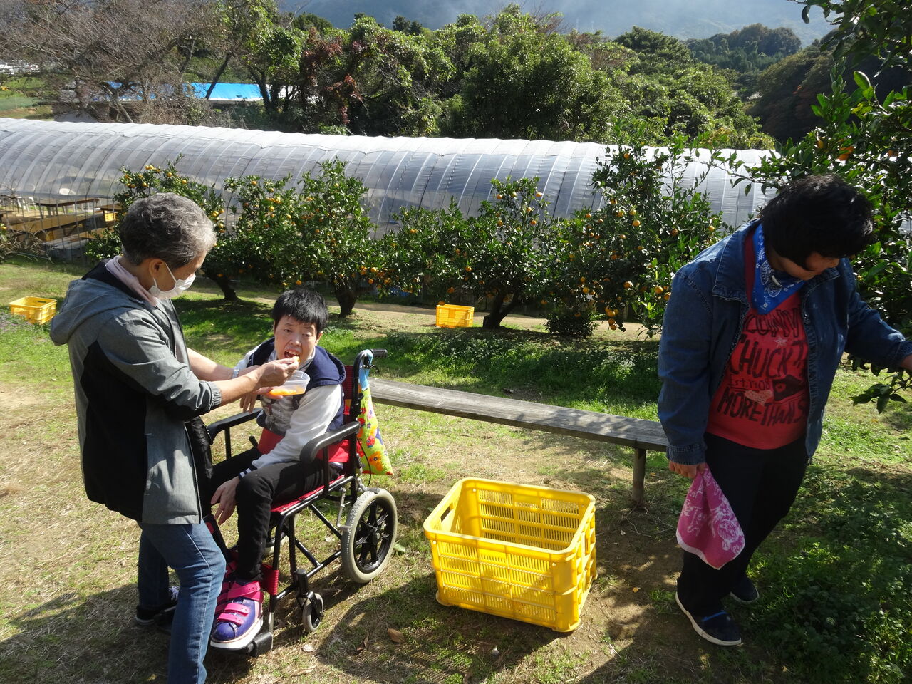 12日(火)は職員2名と利用者2名で、川棚の久山園に行き、ミカン狩りをしました