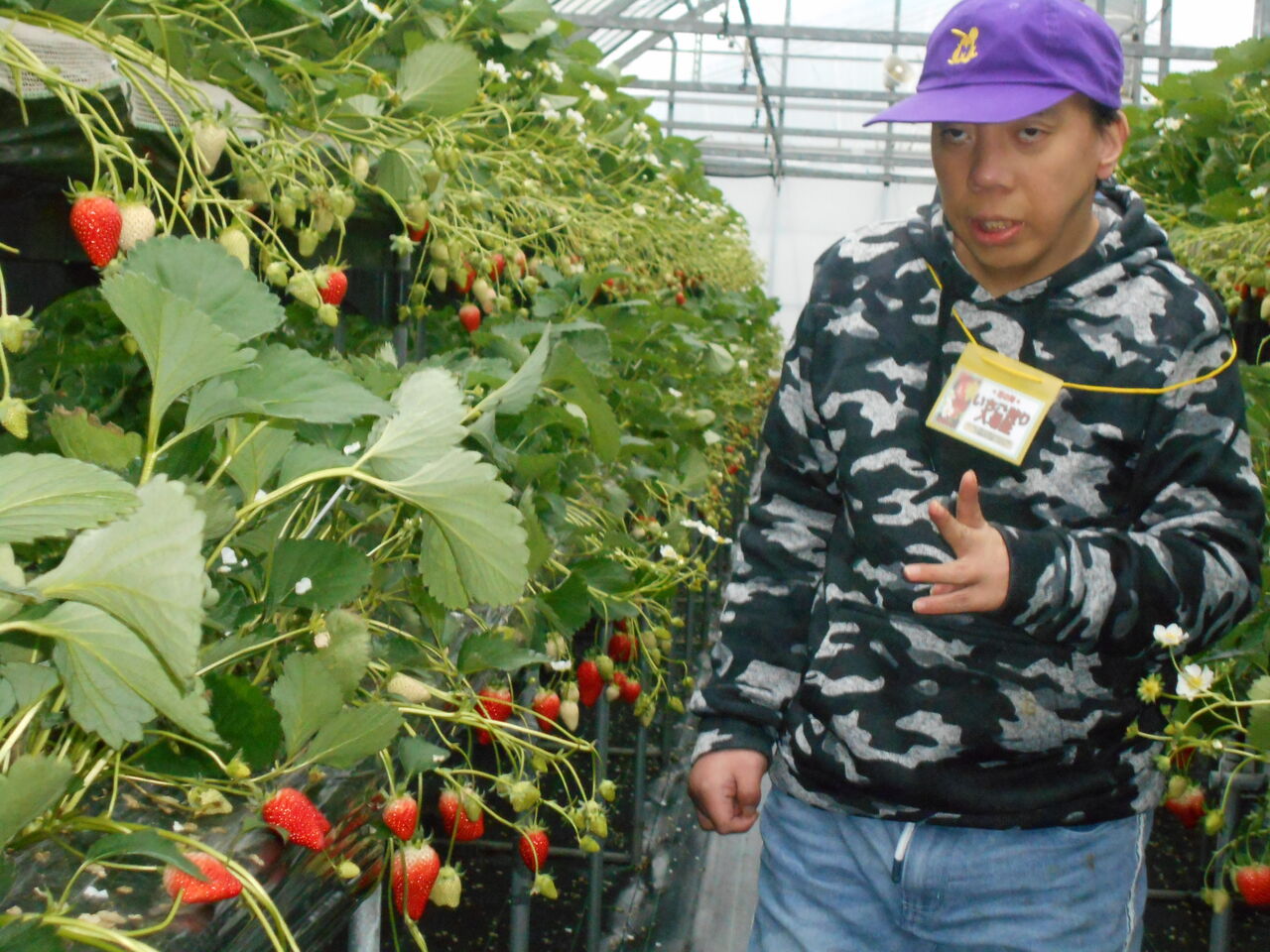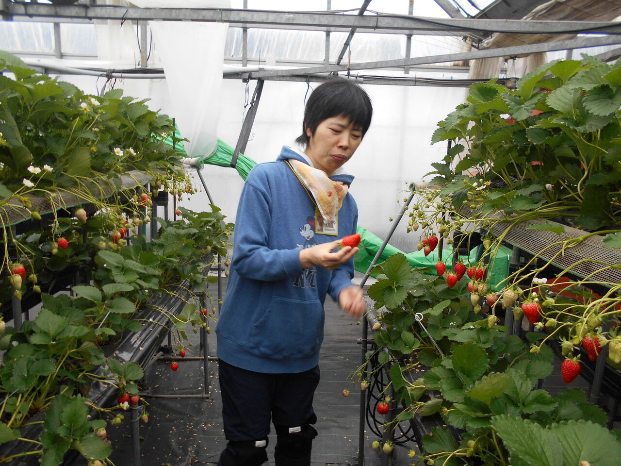 美味しそうないちごを自分で取って食べ、お腹いっぱいになりました
