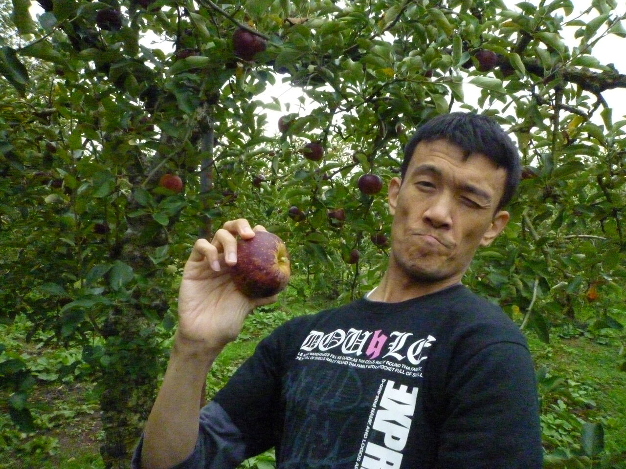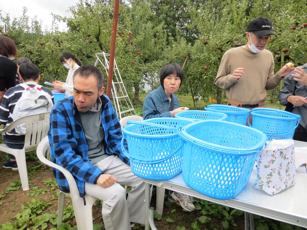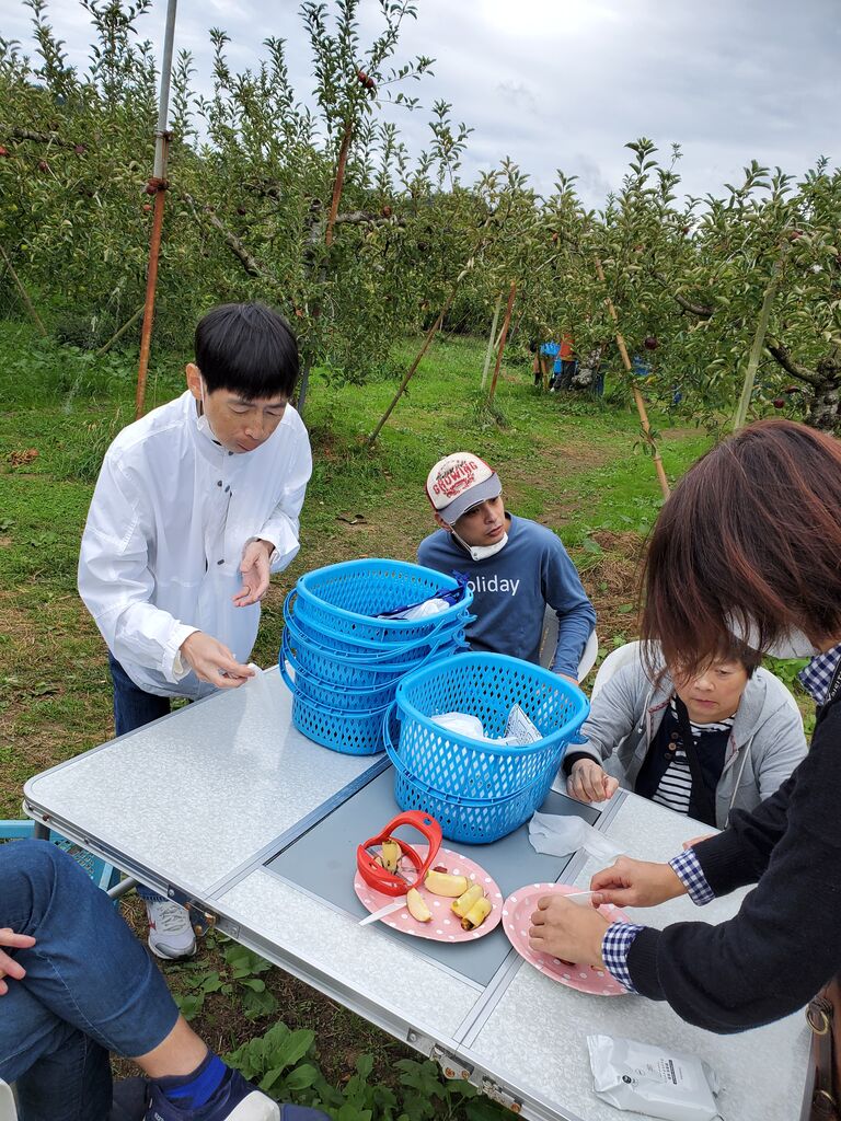 現地に到着し、簡単な説明を受けた後、りんご狩りをしました