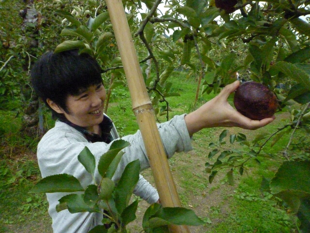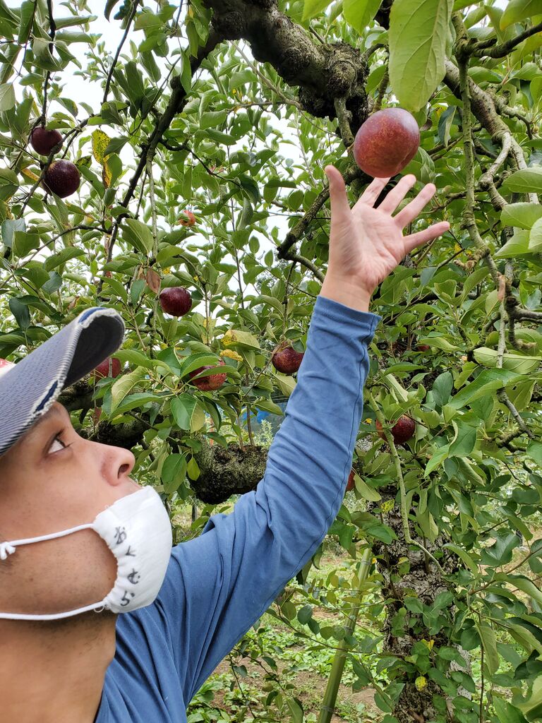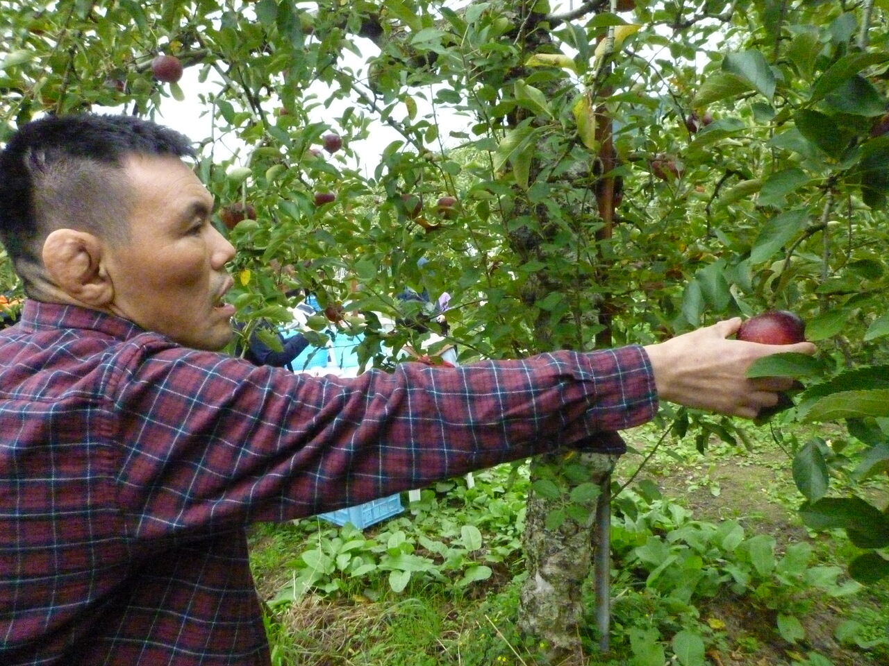 現地に到着し、簡単な説明を受けた後、りんご狩りをしました
