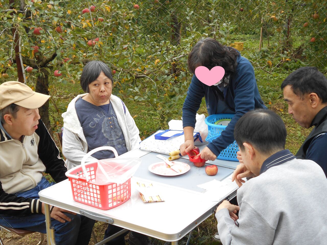 その後、りんごハウスという小屋で昼食を食べ、お土産を買ったり、りんご園内を散策したりしました