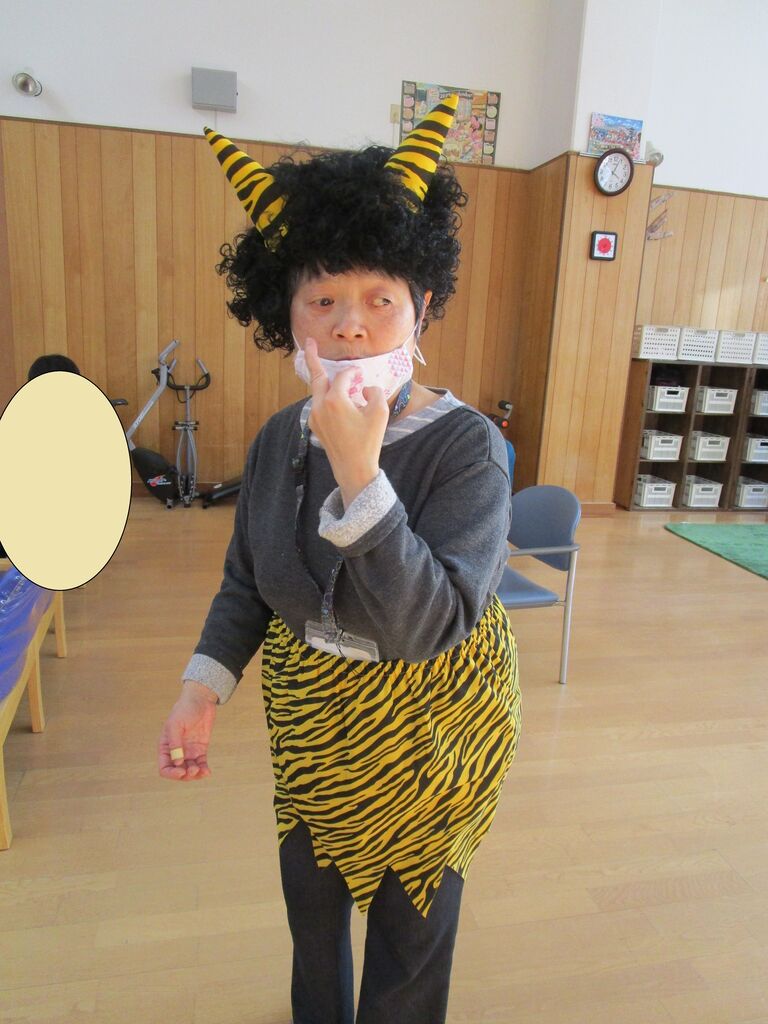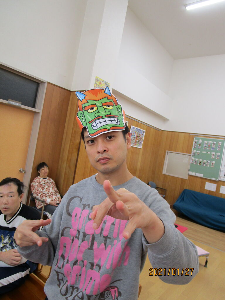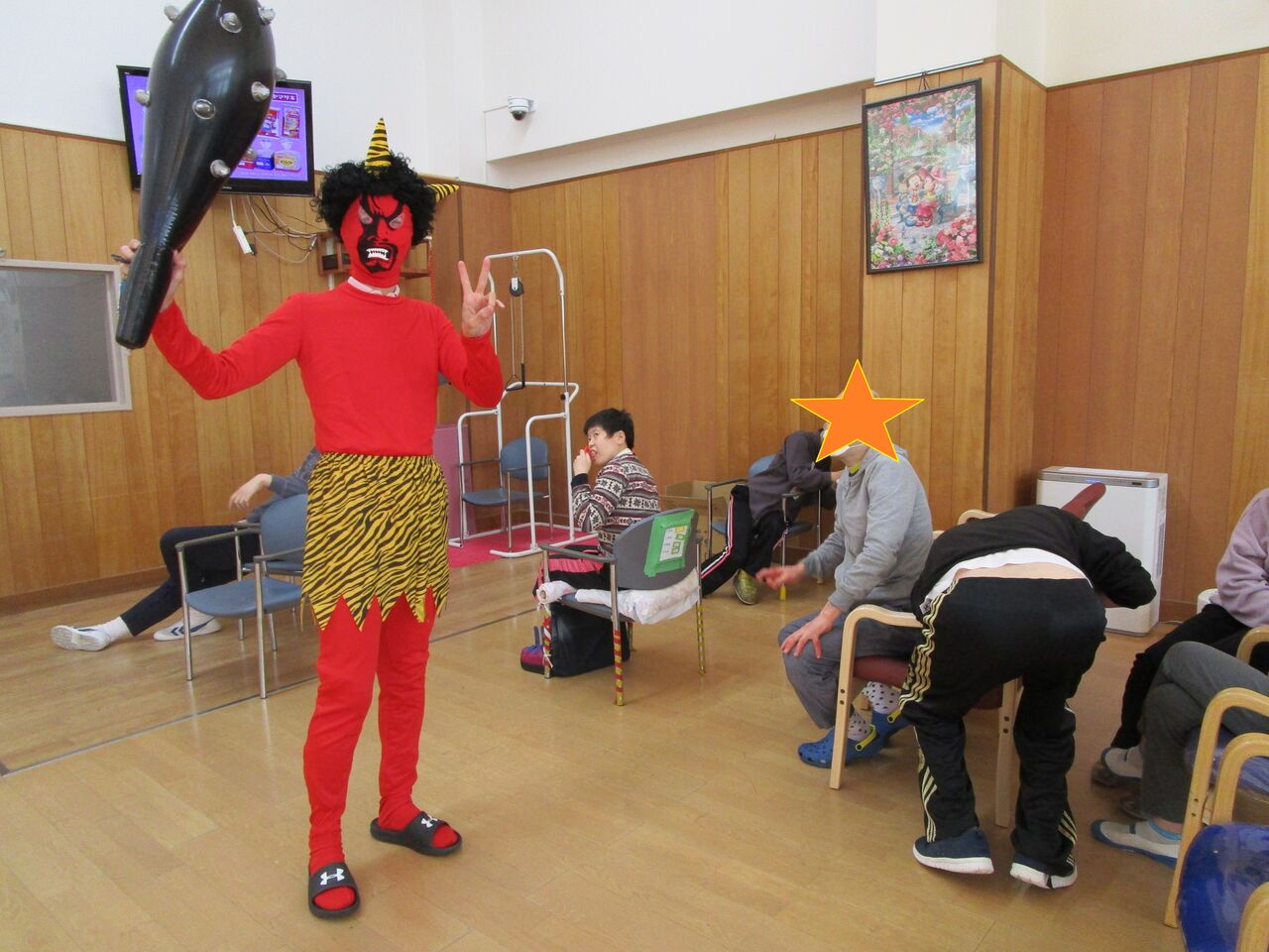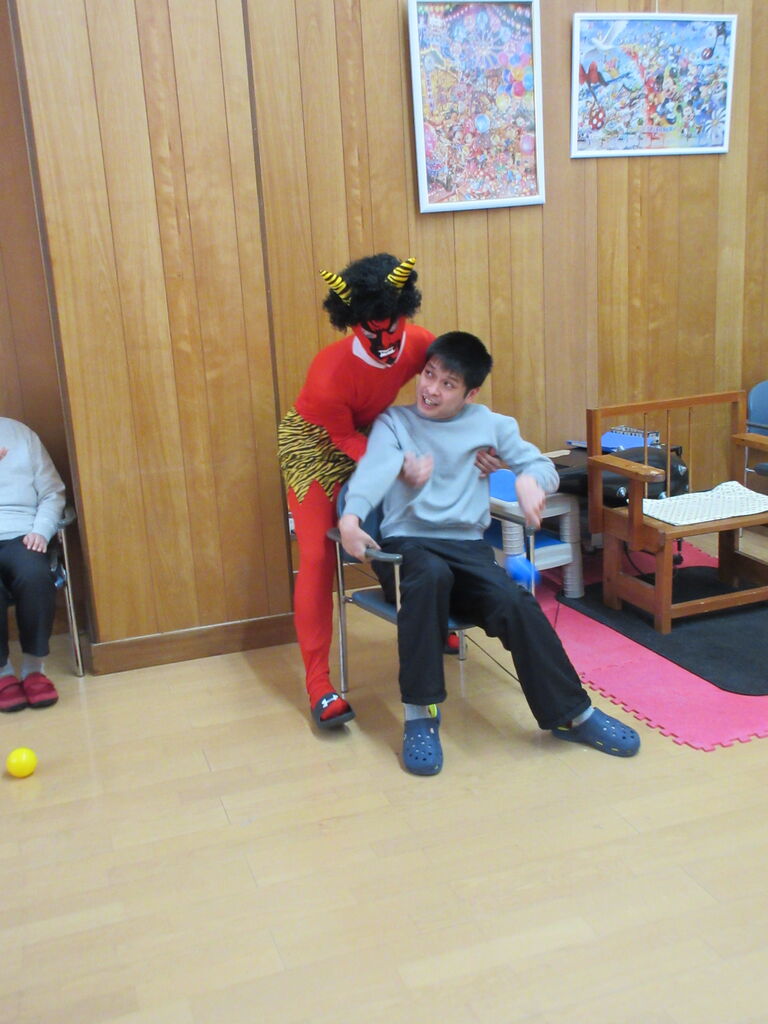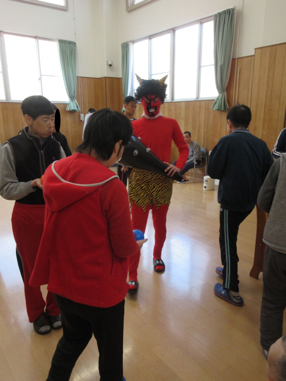 みんなでカラーボールをぶつけて今年1年の無病息災を願いながら、鬼を退治しました