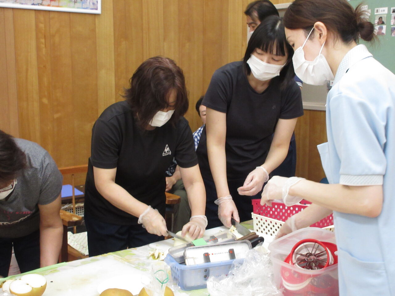 その後、自分で取った梨の皮を厨房職員に剥いてもらい、美味しくいただきました