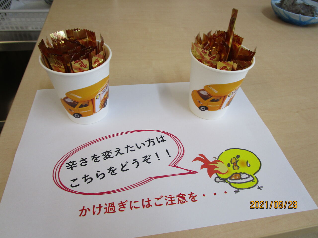 今回も、某カレーチェーン店のデザイン等を一部拝借して、外食気分を味わって頂きました