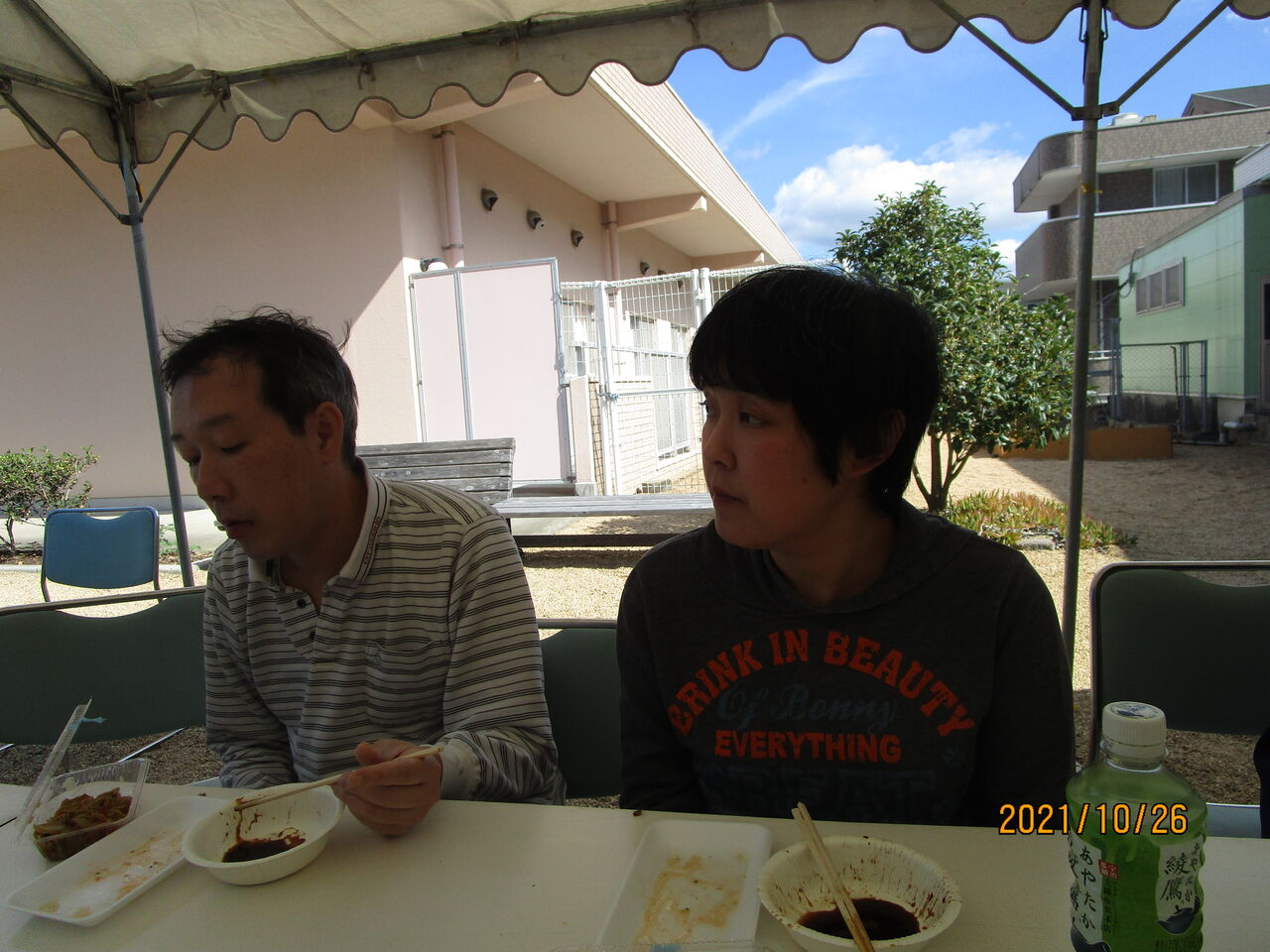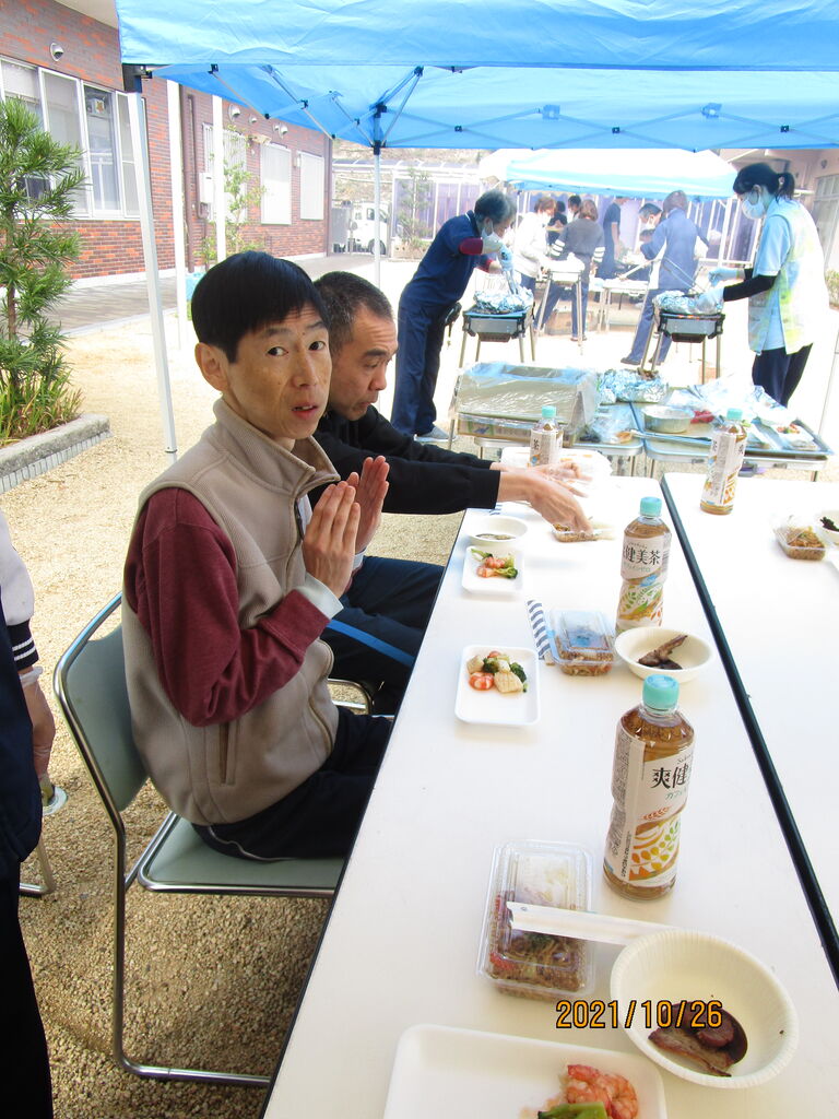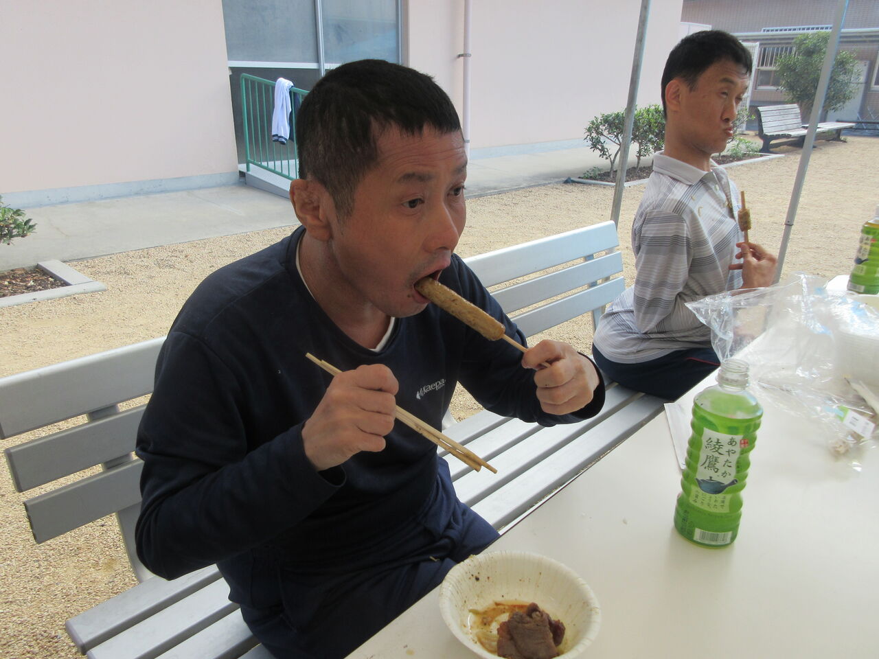 今年は例年以上にメニューも豊富で、おにぎり・肉・焼きそば・イカ🦑やエビなどの魚介類につくね・ウインナーや更にはデザートまでいろんな物を厨房職員が用意してくれていました