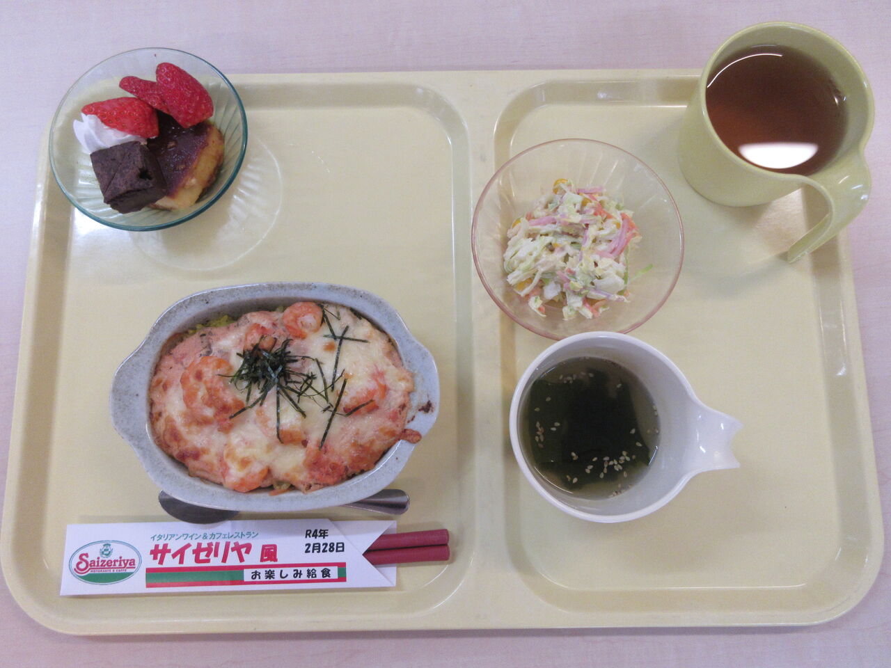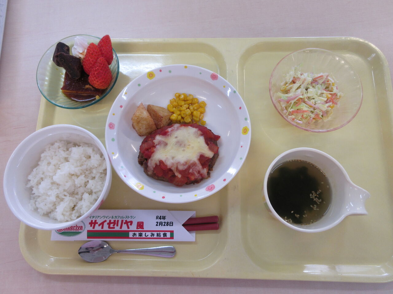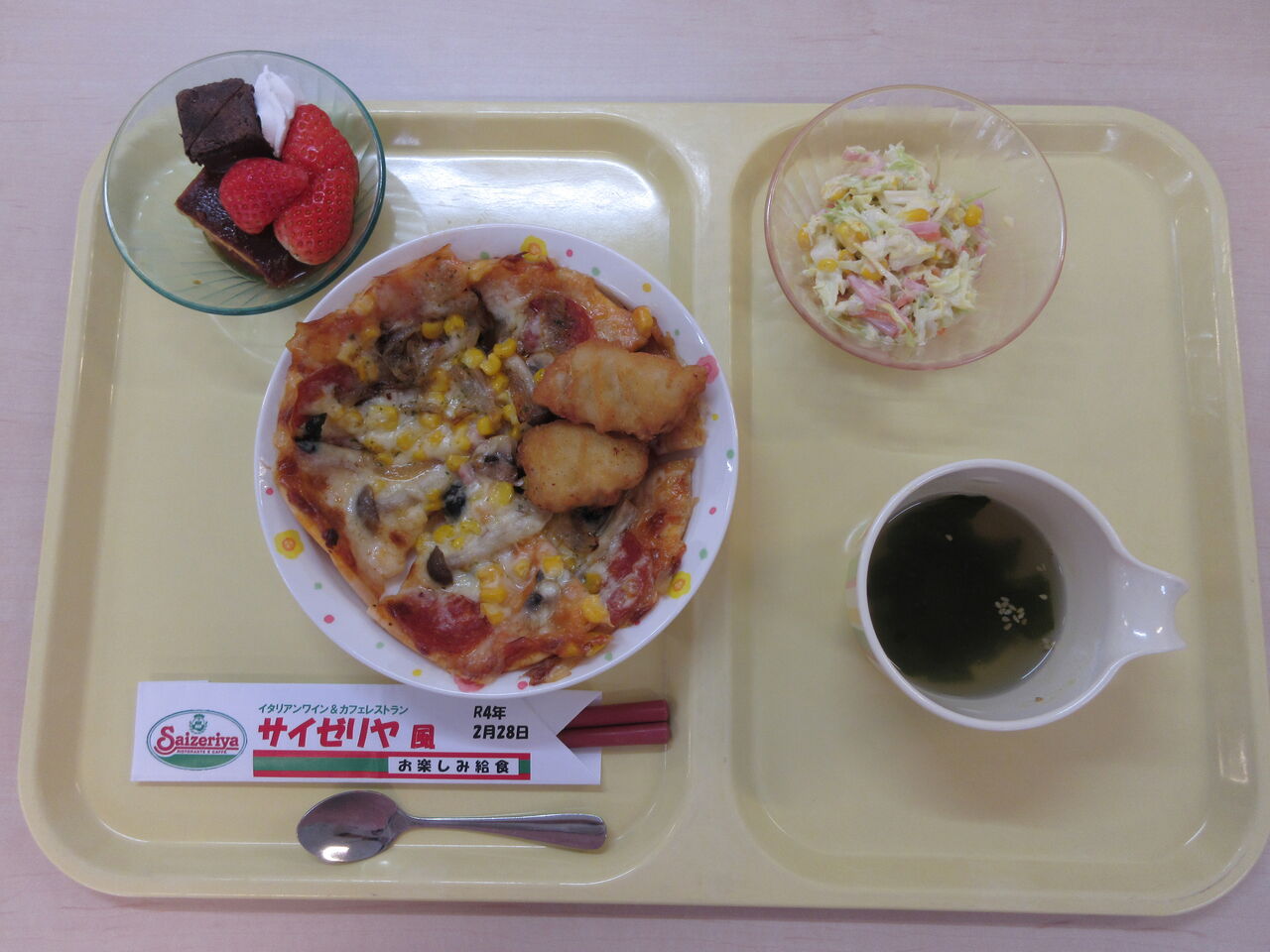 さて、2月28日(月)に毎月恒例のお楽しみ給食を実施しました