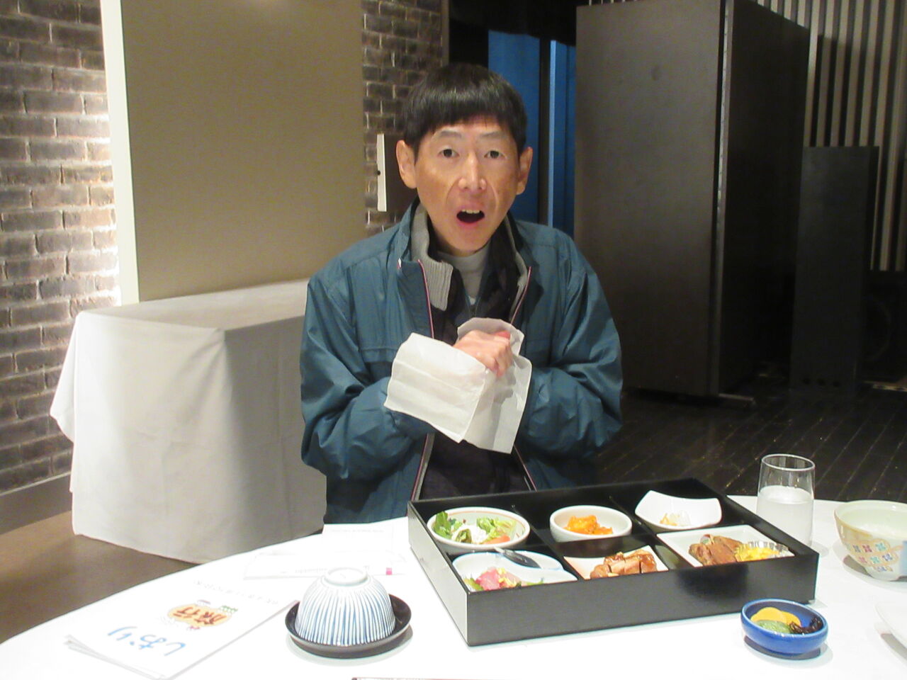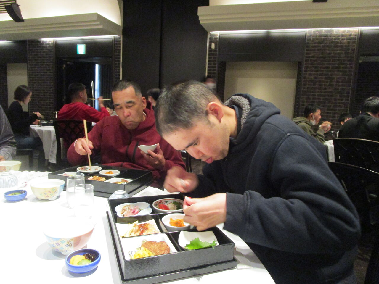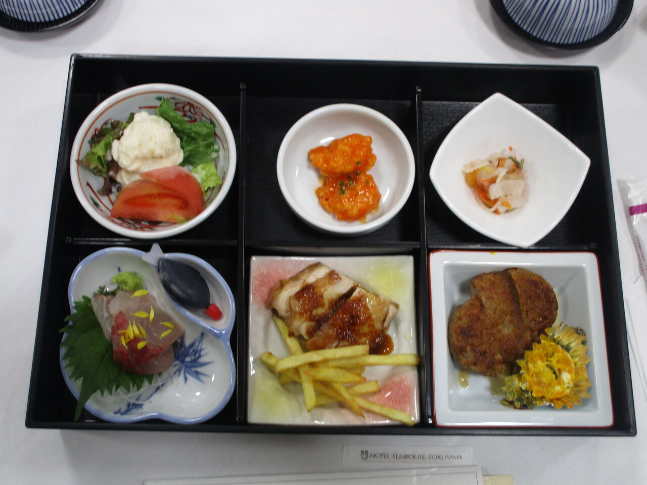 9時頃にバス2台に分乗し、途中で三東SAでのトイレ休憩をはさみ、徳山にあるサンルート徳山というホテルで昼食をいただきました