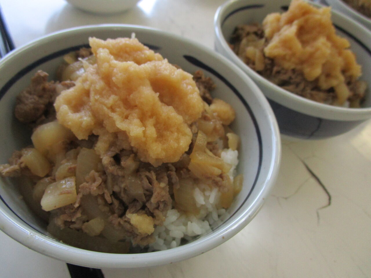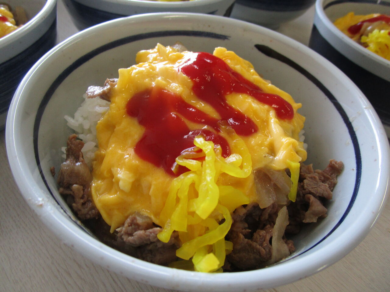 かつおぶしオクラ牛丼・おろしポン酢牛丼・オム牛丼・とりそぼろ牛丼の4種類から選びます