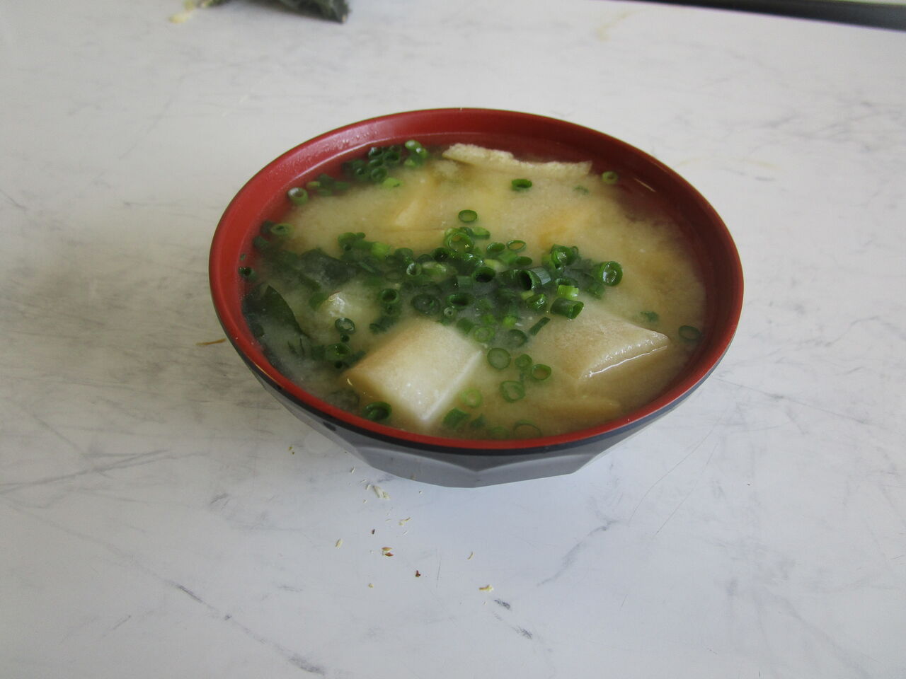 牛丼の他にも、コールスローサラダ・味噌汁・サイダーゼリーがセットでついてきます