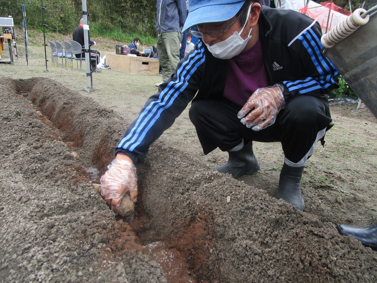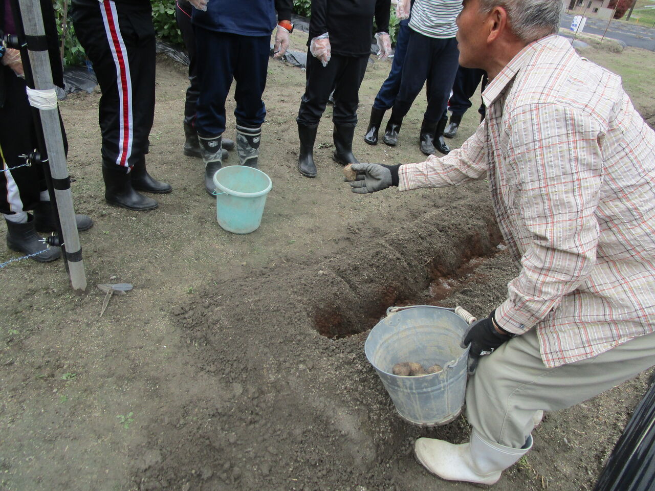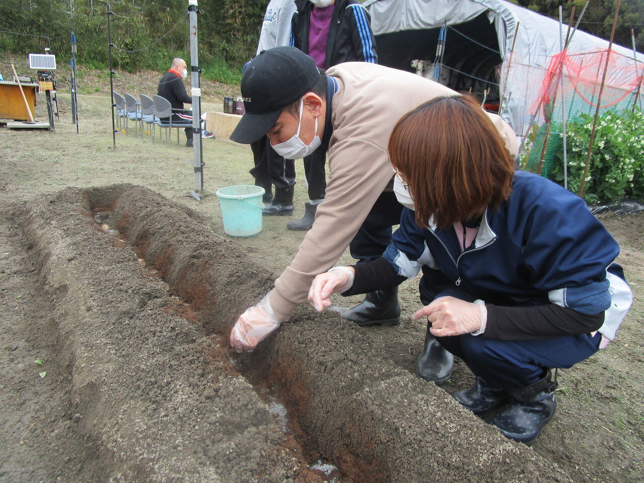 畑に到着後、久保田さんに植え付けの仕方をしっかり聞きます