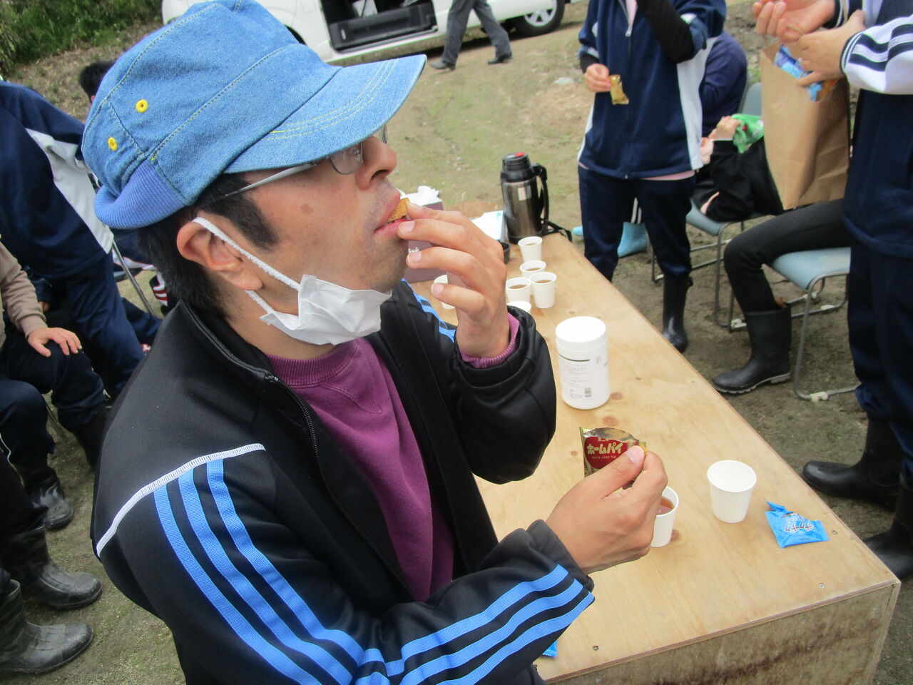作業後は、皆さんお待ちかねのお茶タイムお菓子を頂き、一緒に食べます