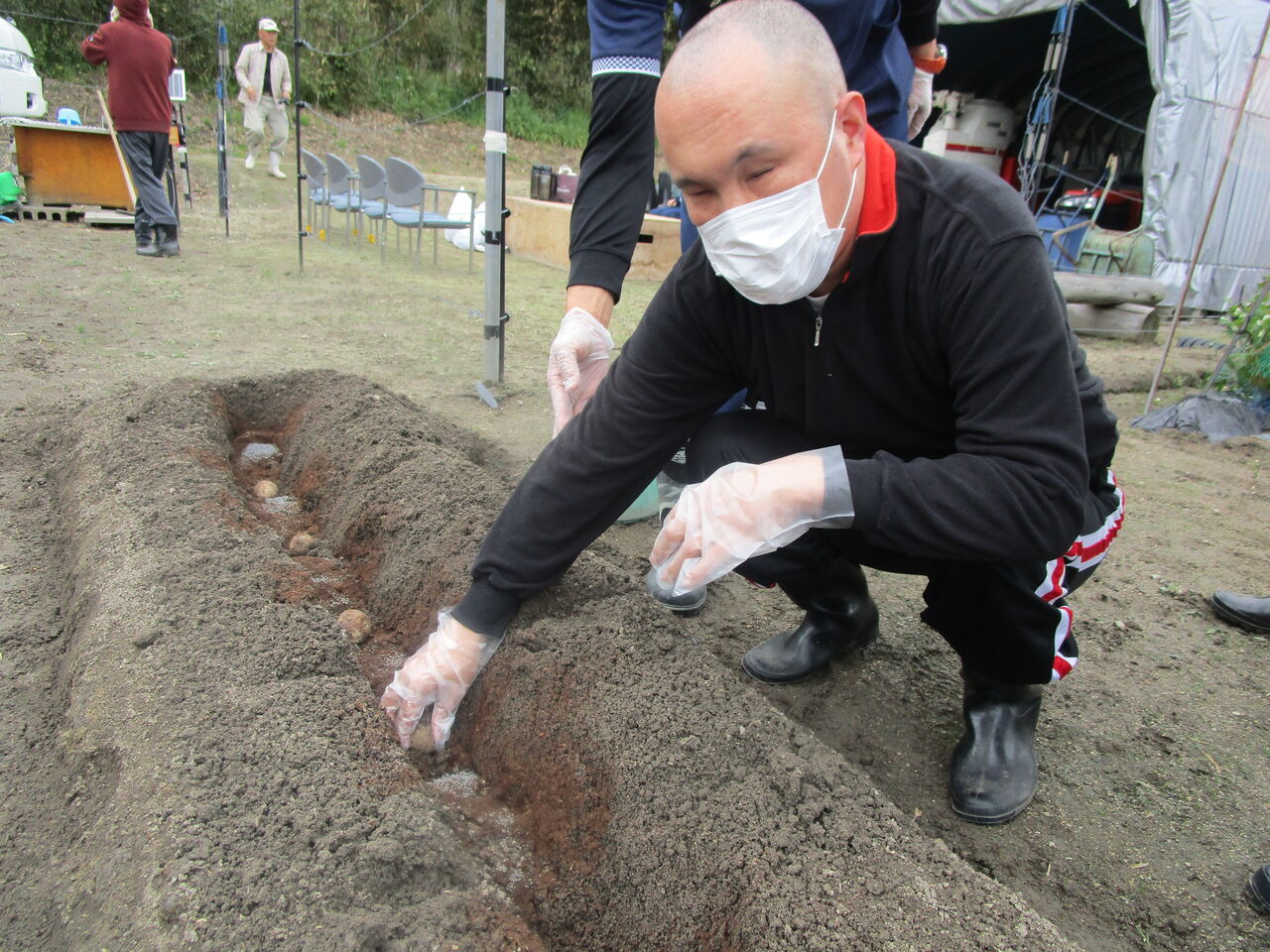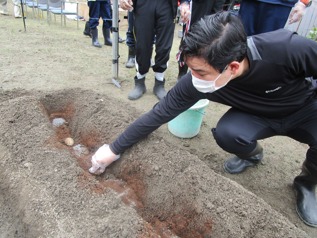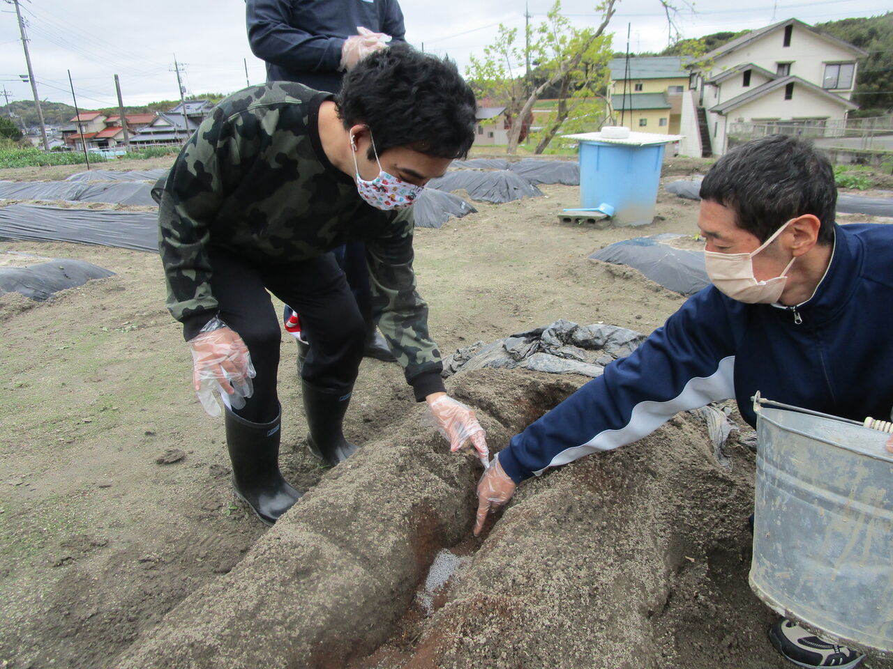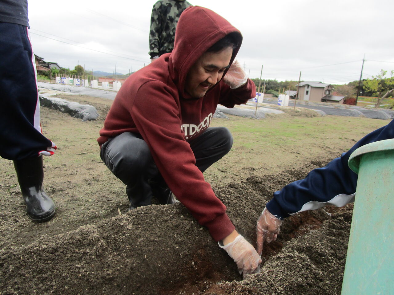 美味しい里芋になる様に、丁寧に植え付け作業を行いました