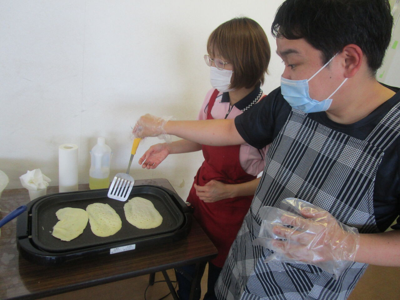 後の焼き作業は職員にお任せですでは、次はクレープです