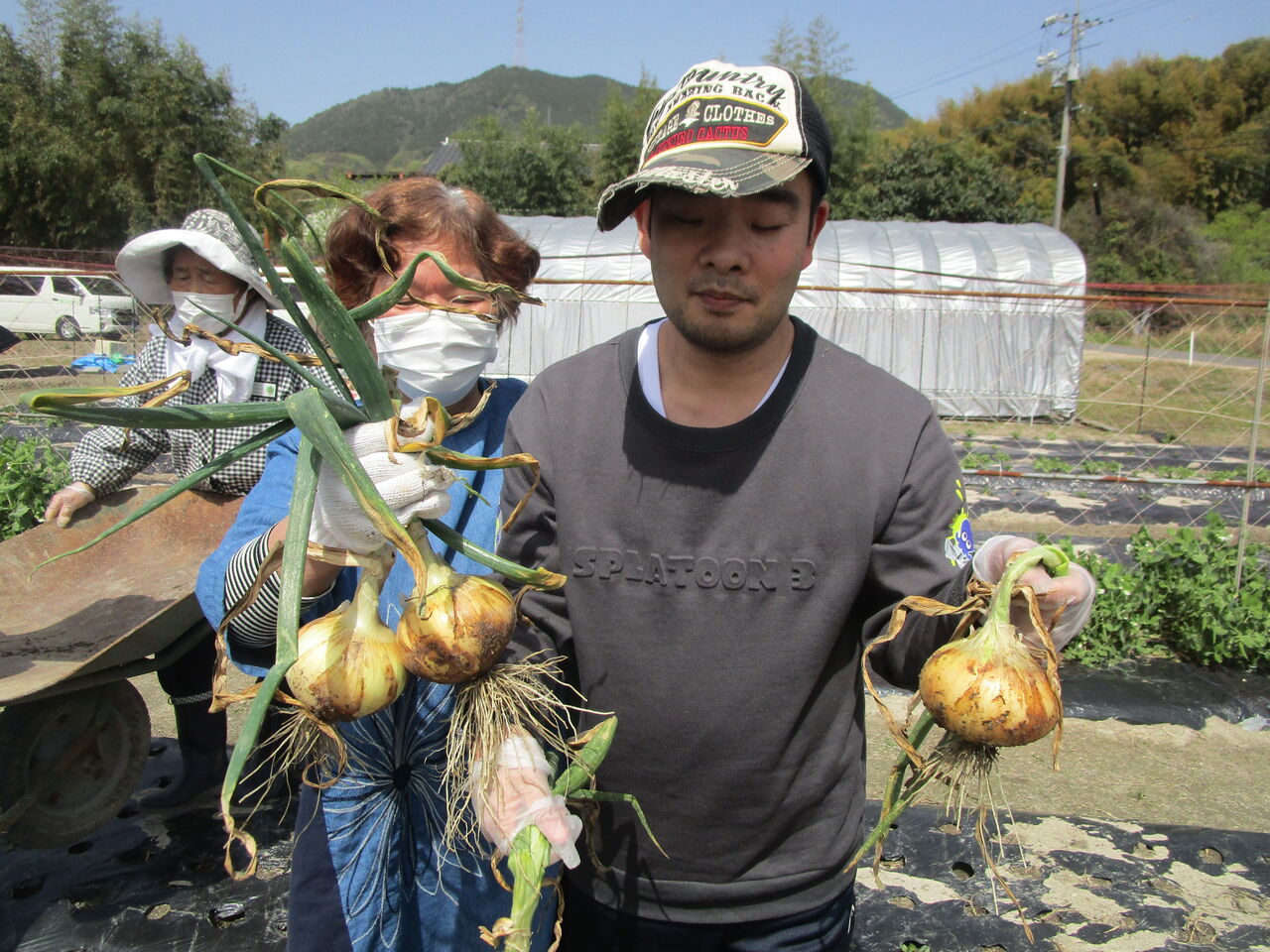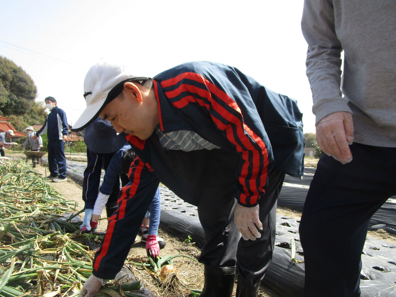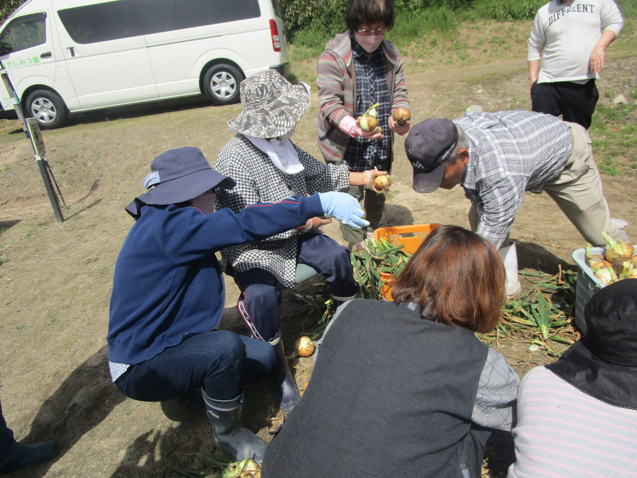 今日、4月13日(木)は、畑にて玉ねぎ収穫を行いました