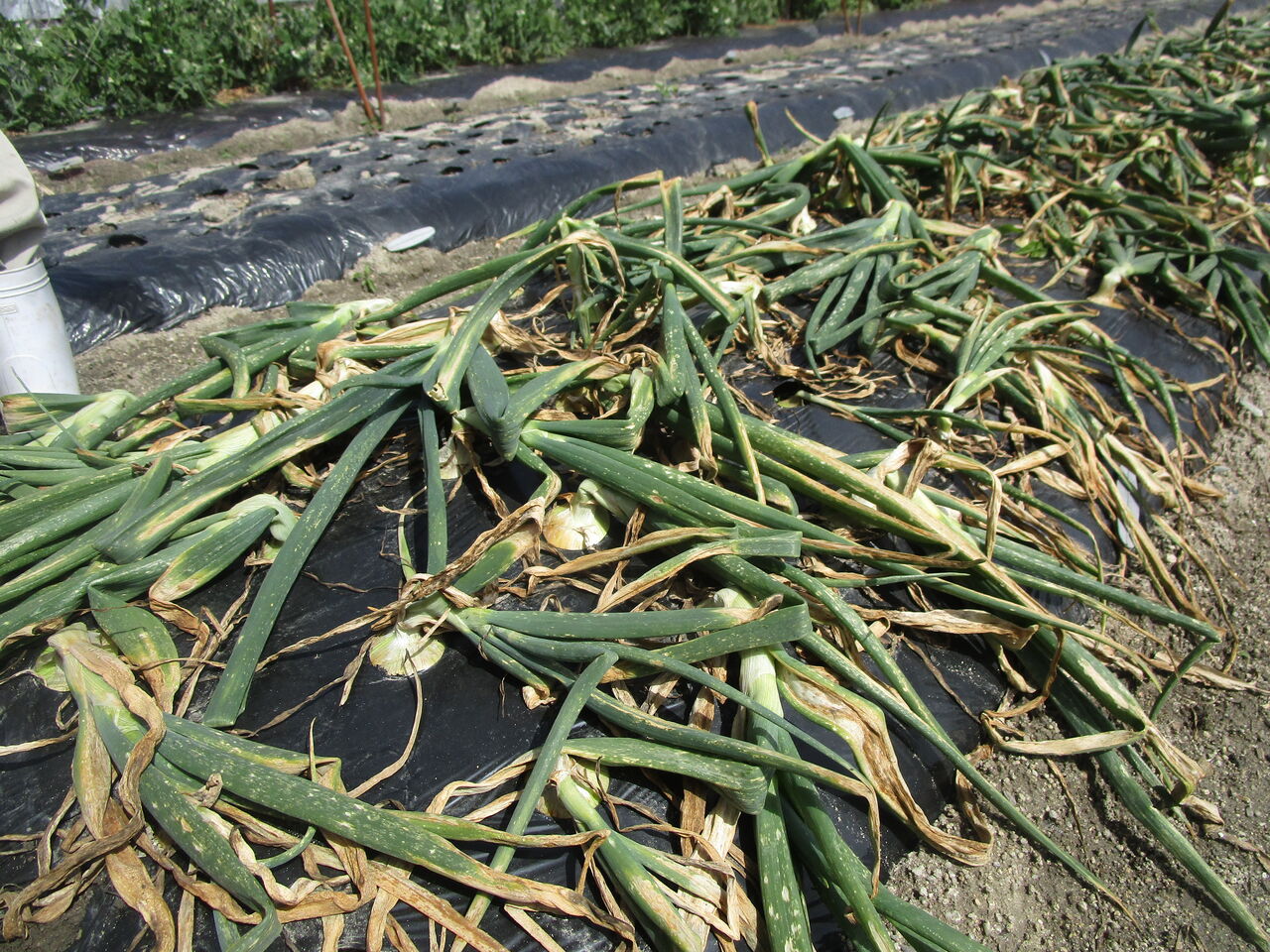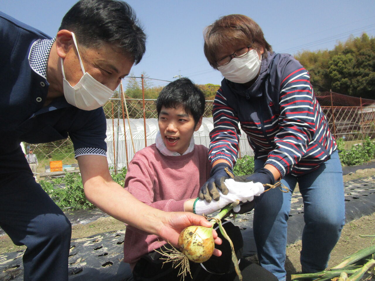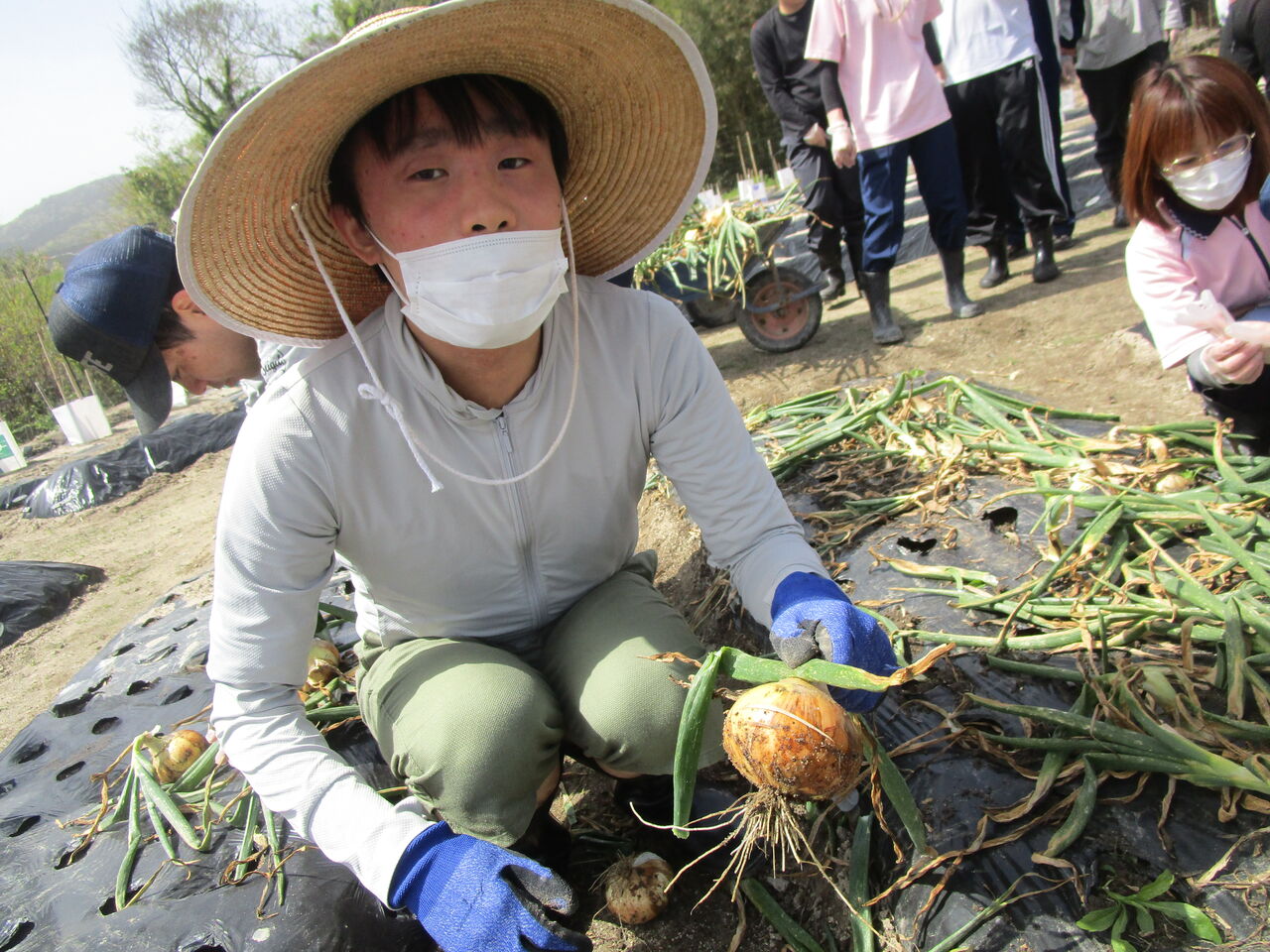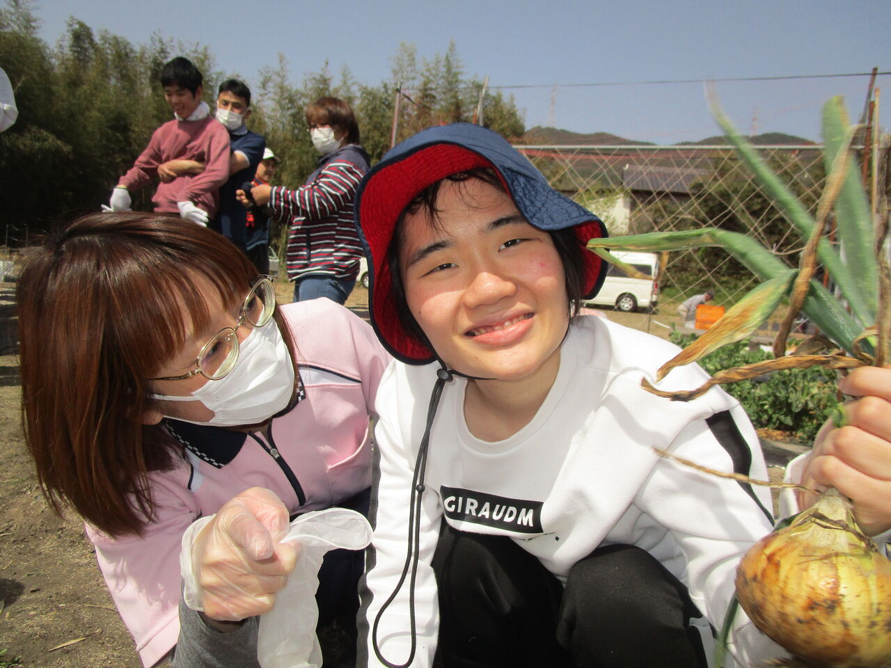 今日、4月13日(木)は、畑にて玉ねぎ収穫を行いました