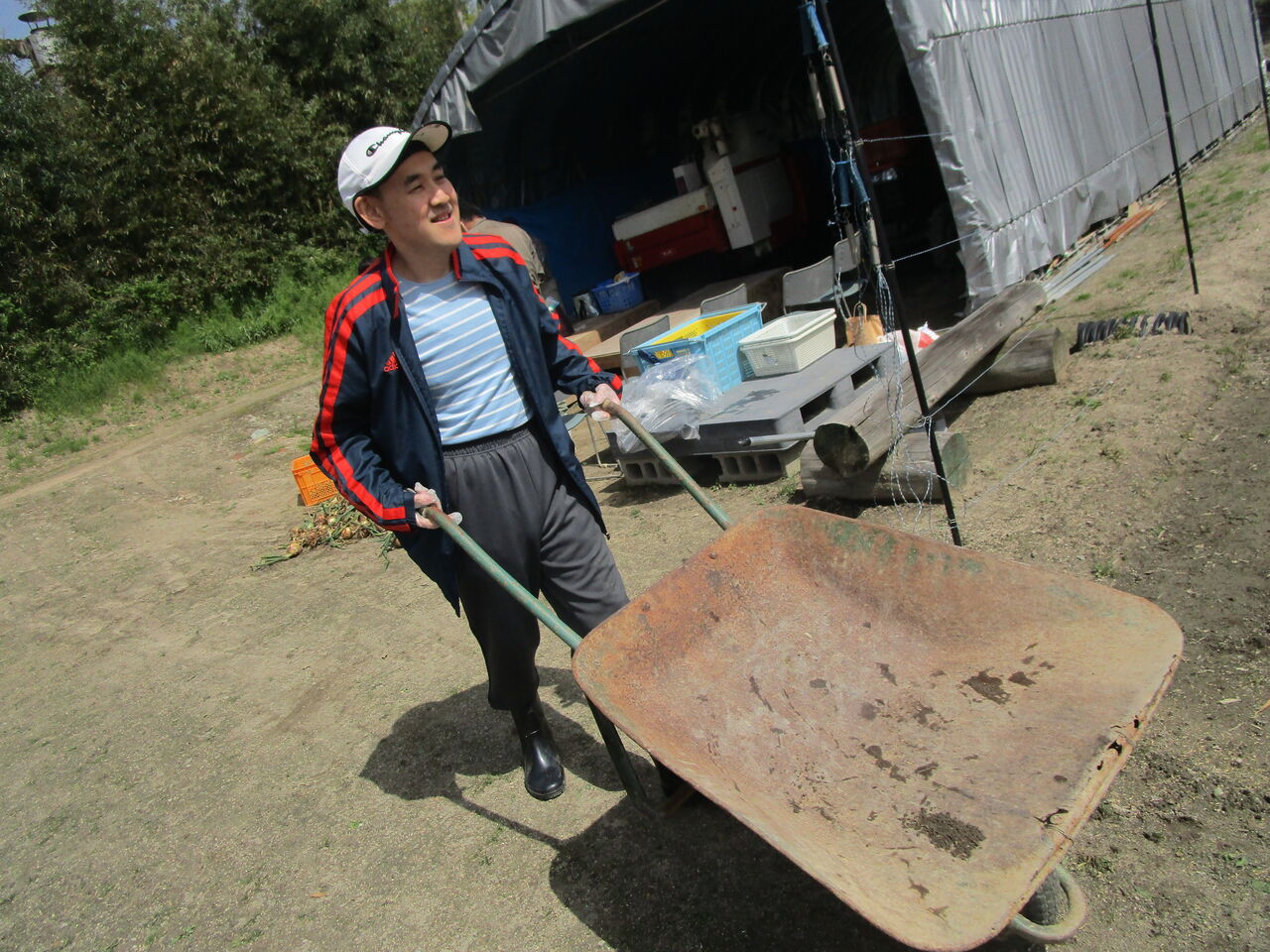 とっても天気が良かったので、半数以上の利用者さんには運動がてら畑まで歩いて移動してもらいました