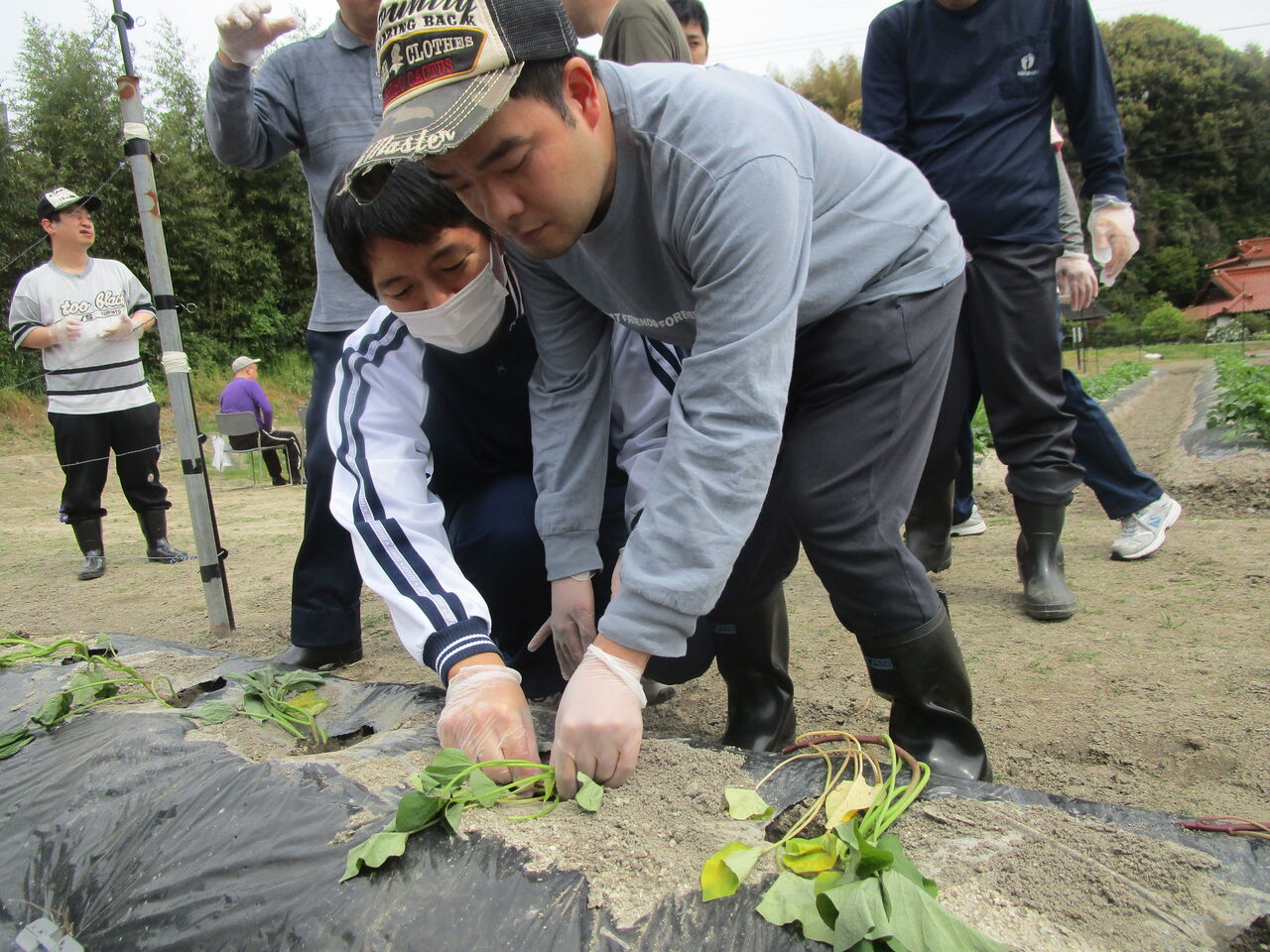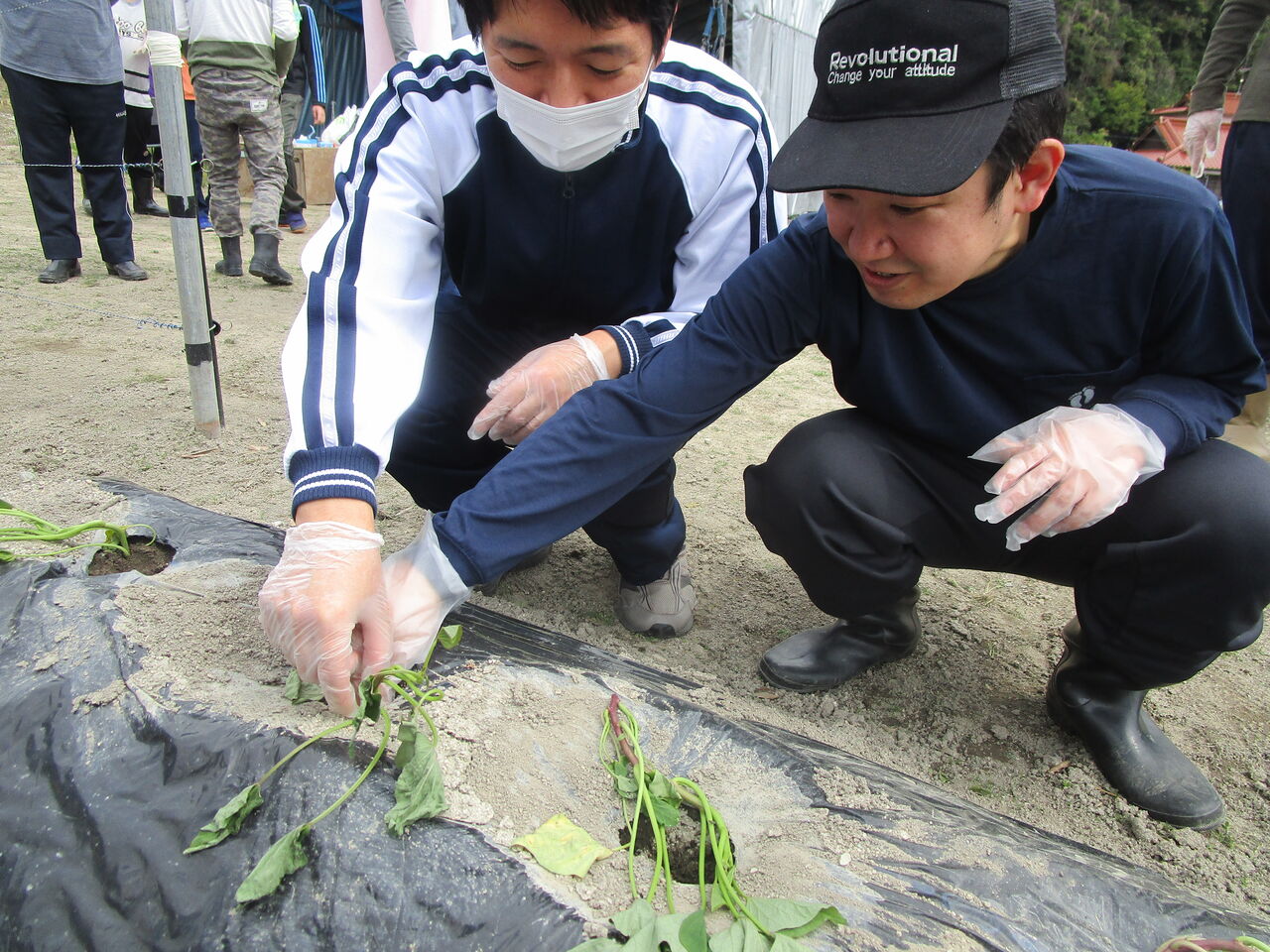 美味しいサツマイモになってねと、心を込めて植え付け作業を行いました