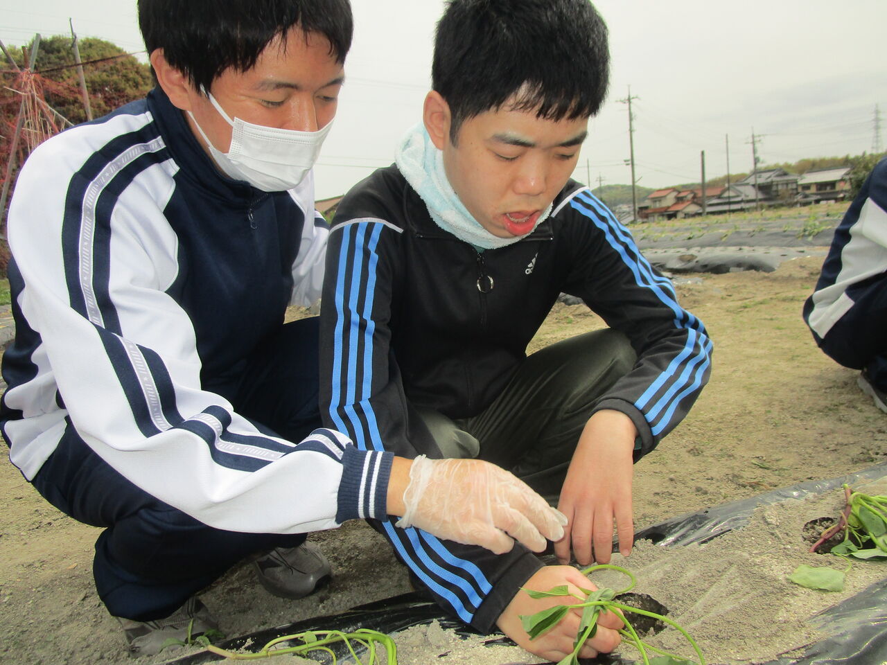 4月21日(金)は、サツマイモの植え付け作業を畑にて行いました