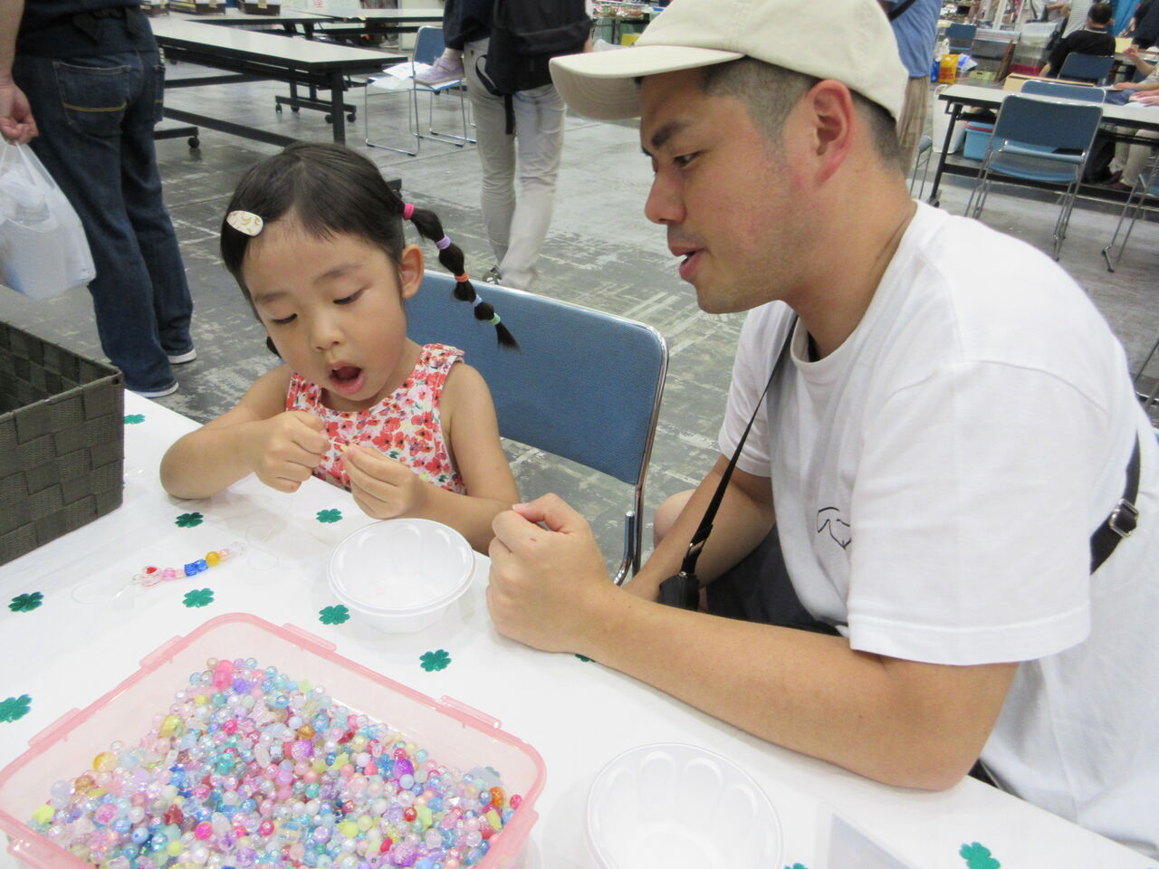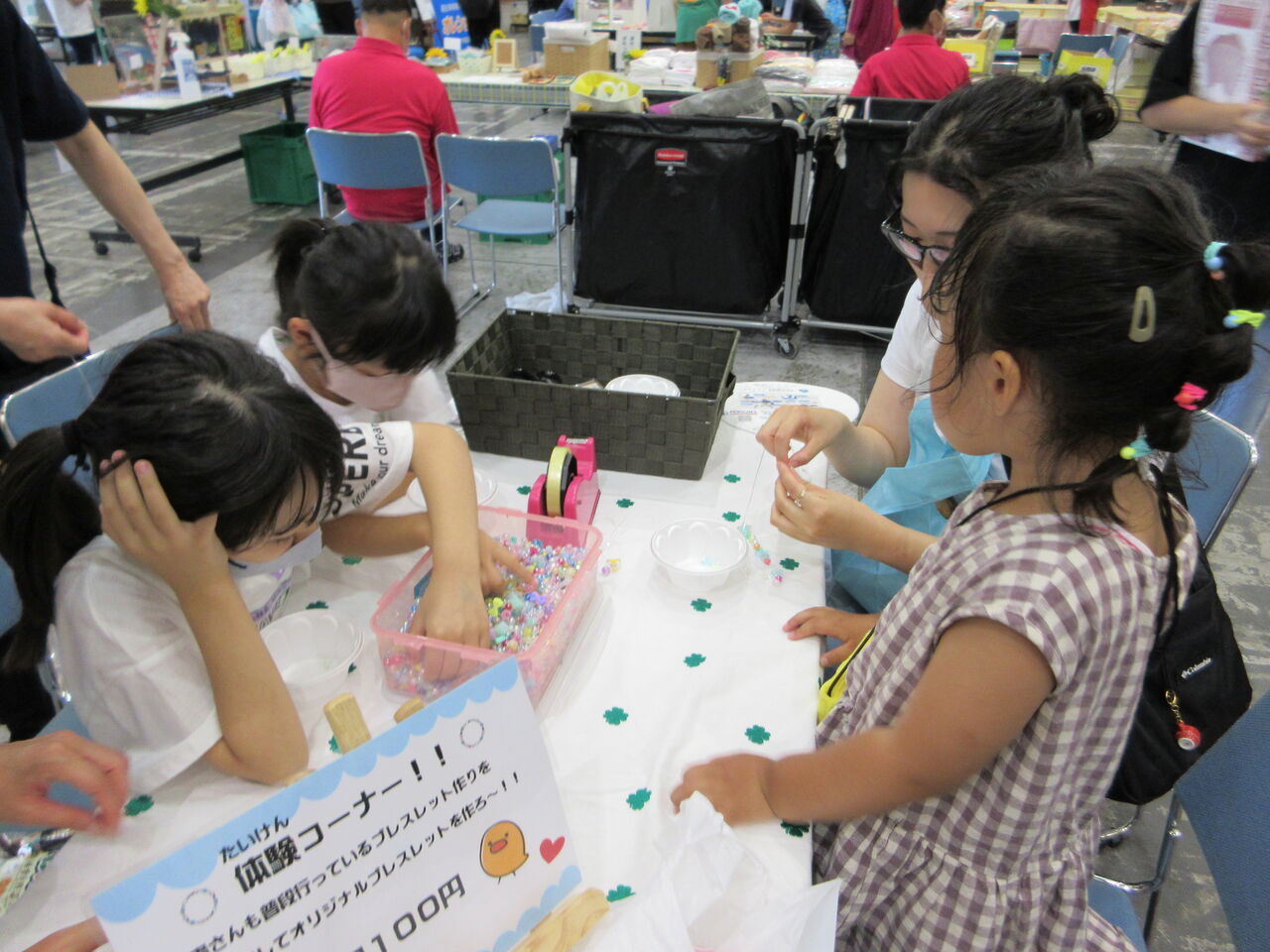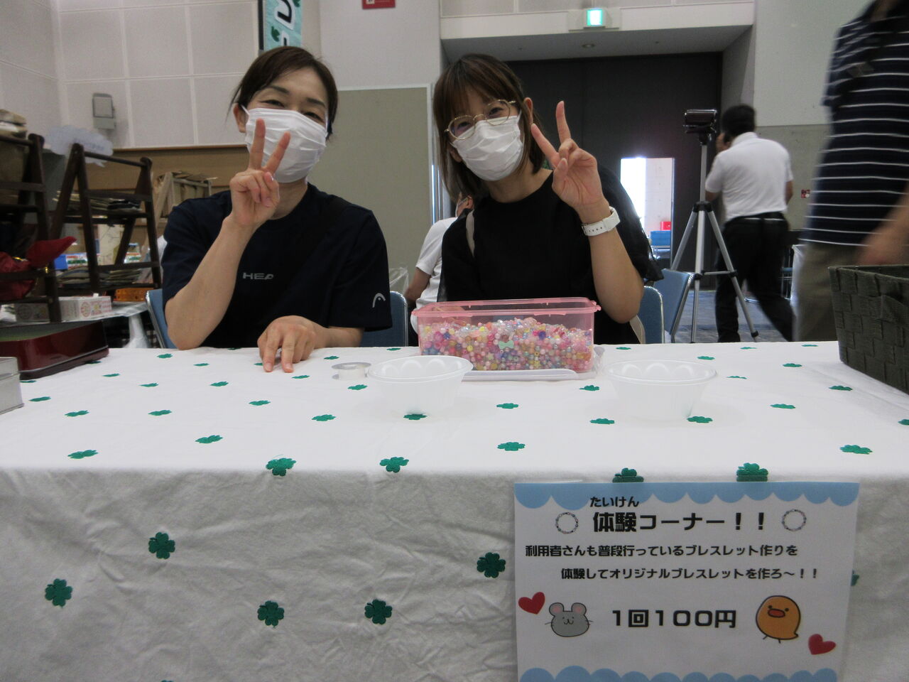 他にも、普段利用者さんが行っているブレスレット作りを来場されるお子さんに体験してもらうブースも設置しました