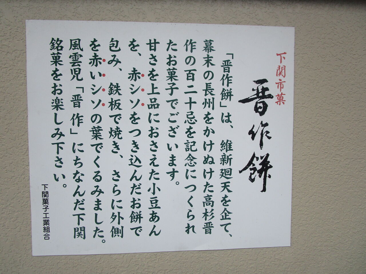 購入後、再び東行庵を目指して出発し、到着後はこちらでも「晋作餅」やお菓子を購入しましたIMG_5682