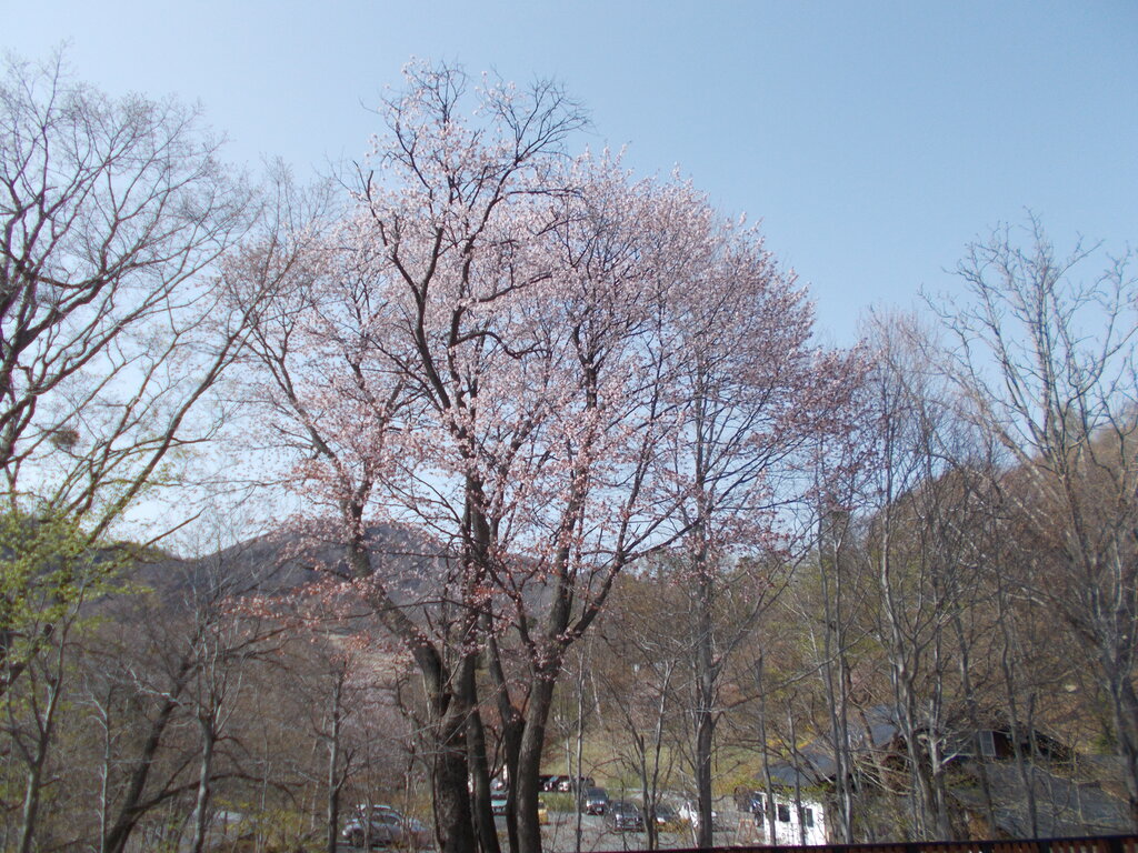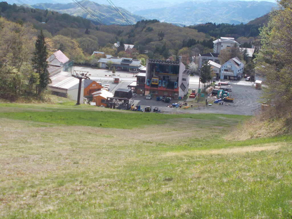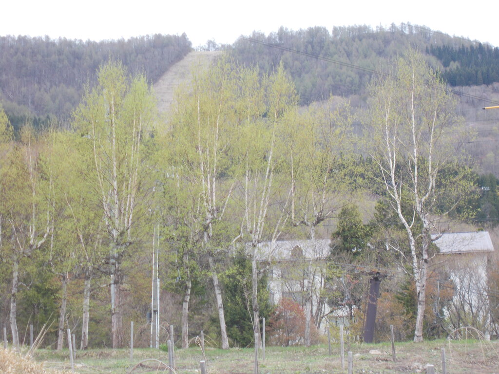 ル・ベール蔵王玄関前・朝7時・10度・晴・無風・陽がサンサン・中森ゲレンデ新芽が緑色になりました!!蔵王中央ロープウェイ今日から6月18日迄休業・蔵王ロープウェイ5月28日迄休業・蔵王スカイケーブル5月24日迄営業し5月25日から8月7日迄休業です!!!