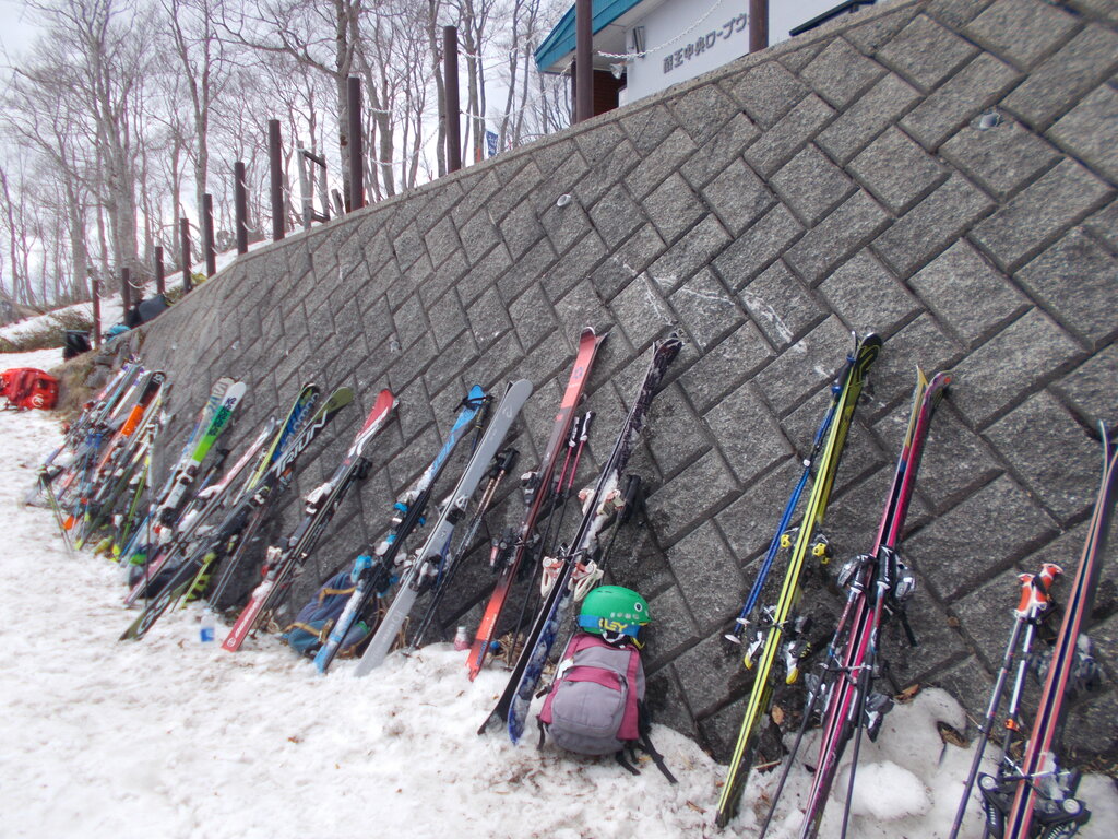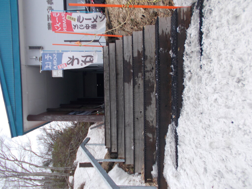 鳥兜駅階段9段雪の上・6段雪の下です!!!積雪40cmゲレンデ所々土が出始めました!!!