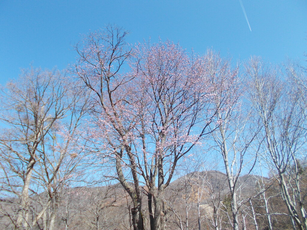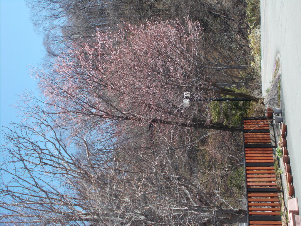 玄関前右の蔵王温泉で一番大きい桜が咲き始めました!!!地蔵山頂ー1度・積雪40cmです!!