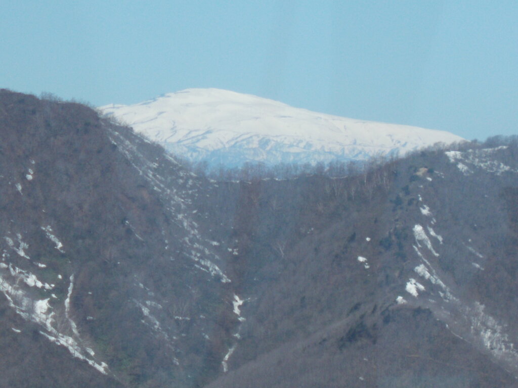 鳥海山が薄っすらと見えました、今月末観光道路が除雪され開通しますが秋田県山形からの観光マイカー通行止めにすると今日の新聞に掲載されていました!!!