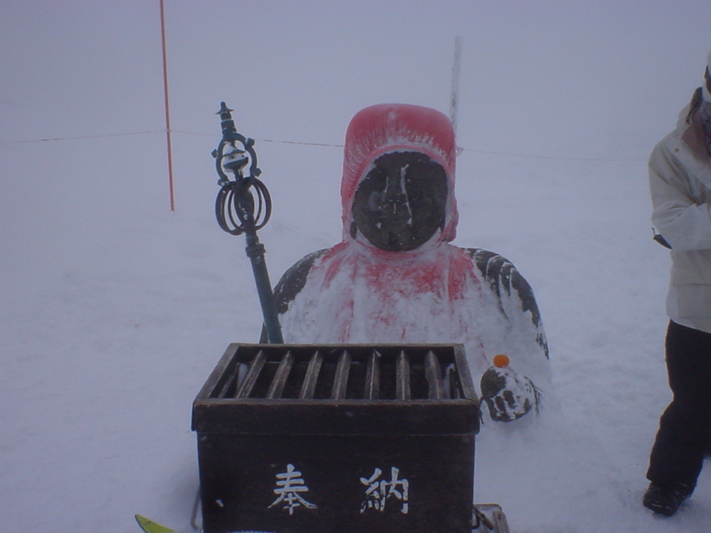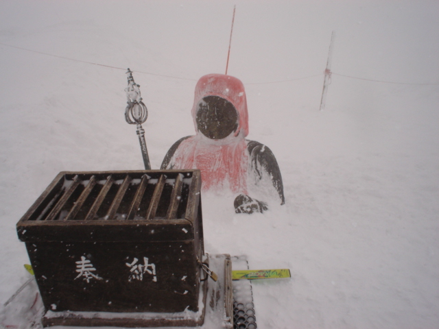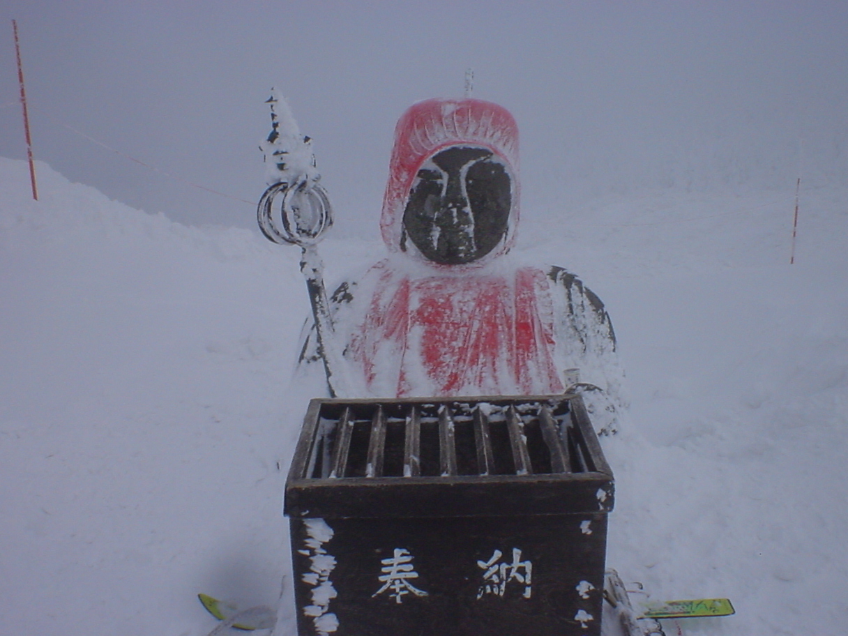 a4349b51.jpgル・ベール蔵王玄関前ー7度雪濃霧新雪数cm、大森駐車場朝10時満車,リフト混雑、黒姫リフトも混雑、900m以上濃霧、フニテルも混雑、地蔵山頂ー12度強風濃霧折角の樹氷見えない。写真は今日の蔵王地蔵尊です。ザンゲ坂若干アイスバーンがあった。パラダイス・コタンリフト(ー8度)お客様特にボーダーが沢山滑っていた。