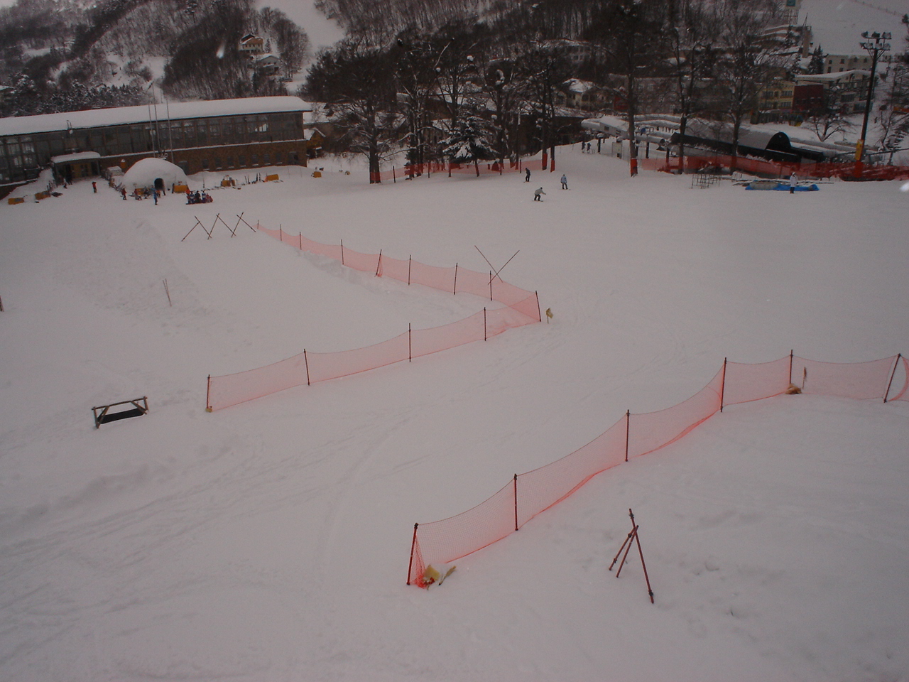 a0f96cc1.jpgル・ベール蔵王玄関前ー2度曇新雪数cm、1.100m以上濃霧風強く蔵王中央ロープウエーウェイト吊下げ定員減で運行、山形市内は雨でしたが蔵王は雪が降っています。お客様が少ないので中森・サンライズゲレンデバーンピステン圧雪とおりで滑りやすかった。ハーネンカム山形県高校総体スキー大会コース解放の為半分ネットを張り規制しています。