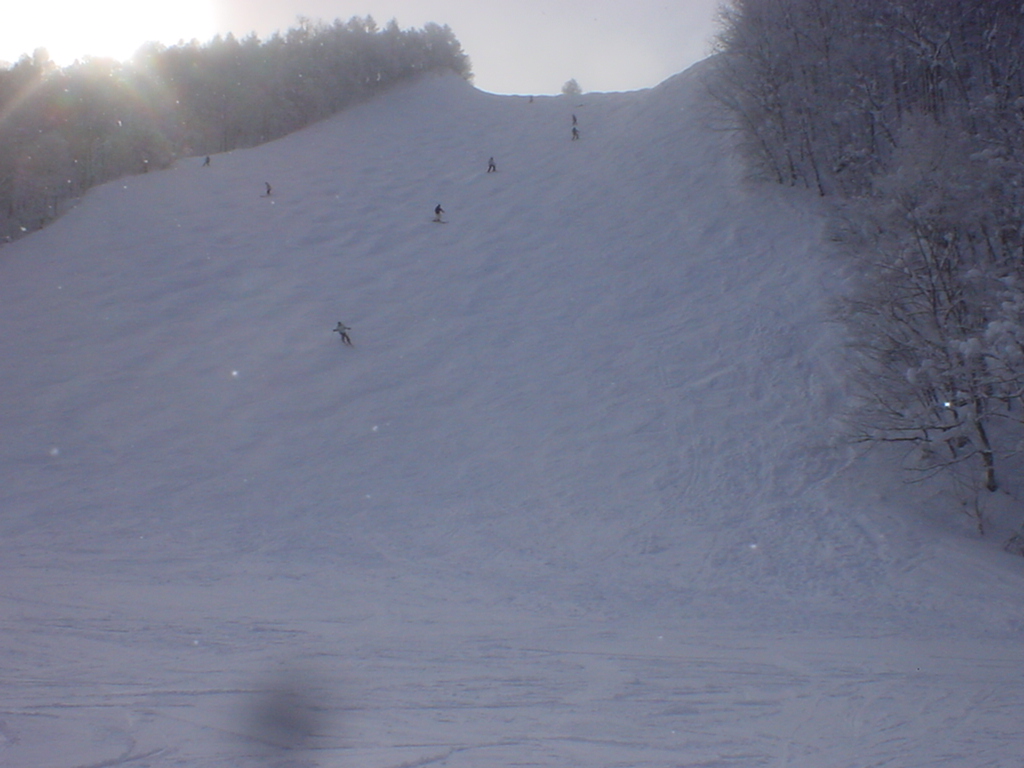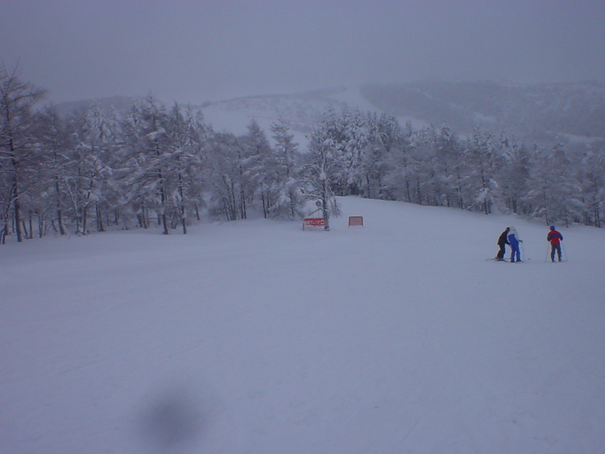 1.200m以上濃霧、大森ゲレンデ地元スキーヤー少なく駐車場30台位リフトは混雑していました。横倉ゲレンデインストラクター引率の講習会多数、横倉の壁滑り易い凸凹の少ないフラット状態でした。黒姫・大森・横倉ともアイスバーンに新雪が積り一部エッヂがづれますが走るような感じの雪質でした。ユートピア第2リフト寒暖計ー3度、各リフトとも箒でチェアーの雪を履き落としていました。中央ゲレンデ風があり手が凍えるような感じでしたが寒暖計が無いので温度は分かりません。ダイヤモンドゲレンデー5度滑る人が少ないので新雪の吹溜りが出来ていました。上ノ台・高鳥・ハーネンカム講習のグループが数えきれないほど沢山滑っていました。写真は大森リフト上降り場から黒姫方面を写したスナップです。サンライズ・中森もいつもより多く滑っていました。