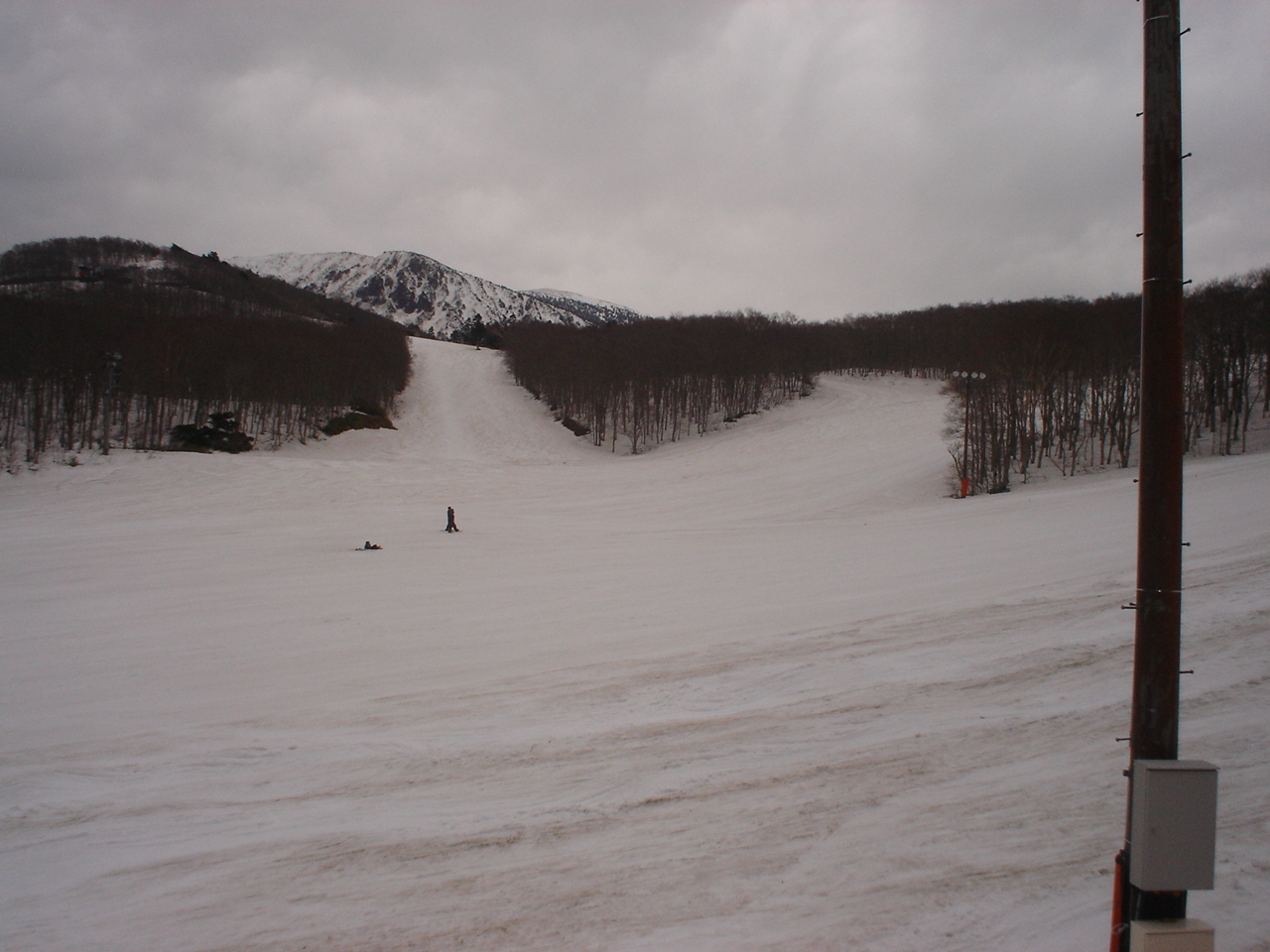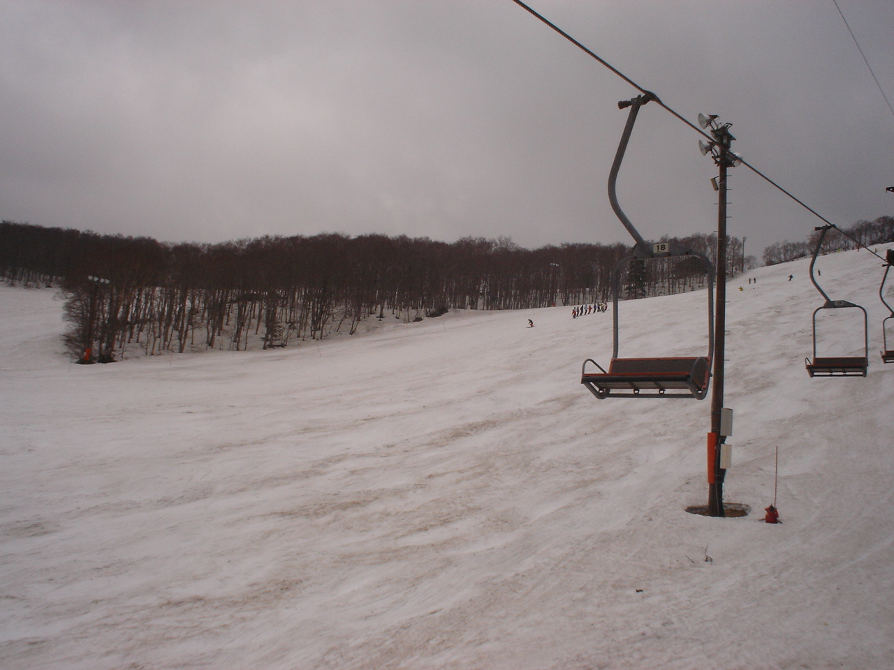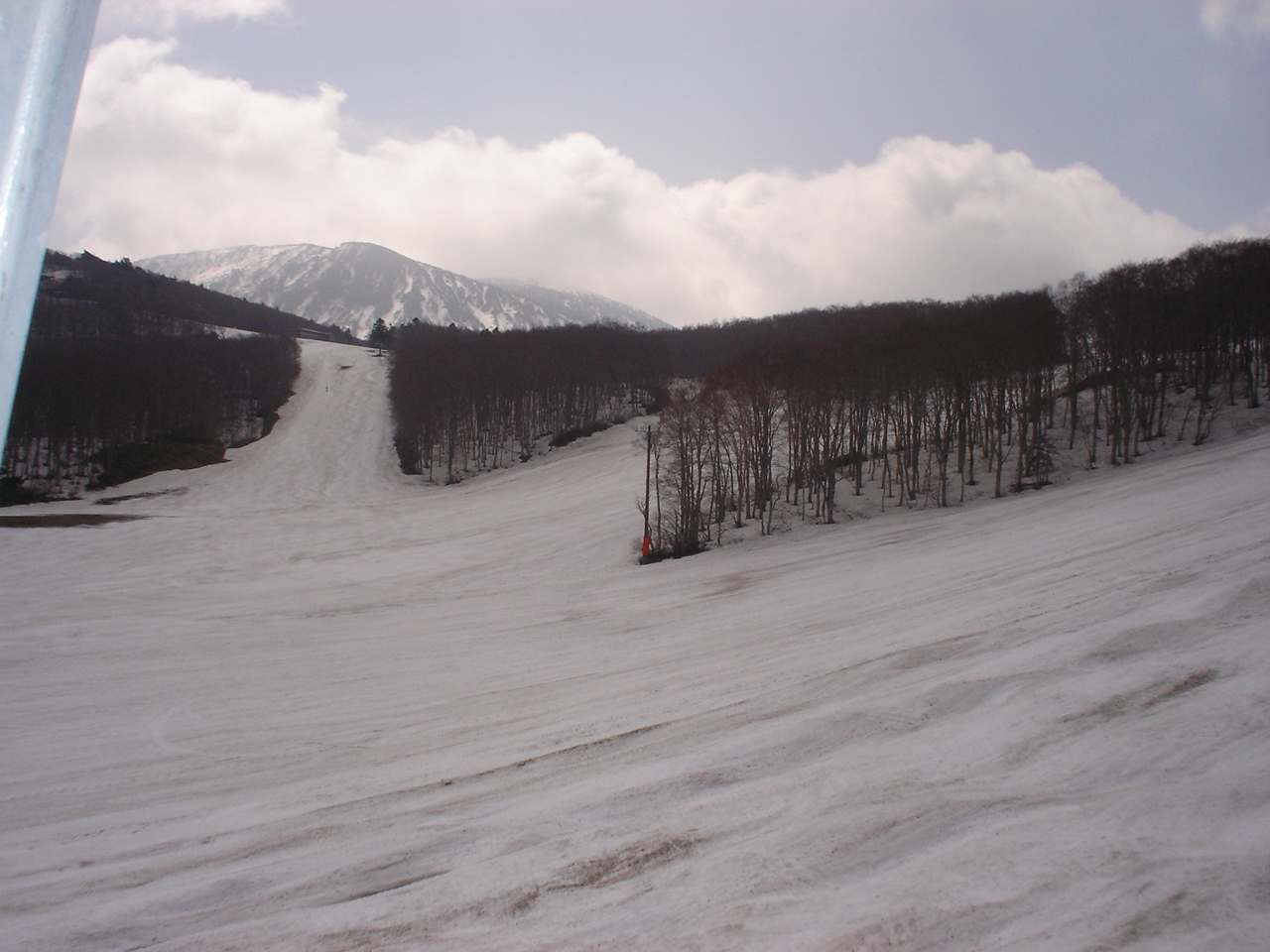 542c502e.jpgル・ベール蔵王玄関前10度曇、蔵王ロープウエー地蔵山頂駅2.8度・強風・曇、ザンゲ坂・パラダイスゲレンデを滑りユートピア第2リフトで滑りました。黒姫第1クワット昨日で運転終了したと山麓駅で聞きました。「昨夜山形市内の夕食会で黒姫からユートピアに行く案内板が黒姫リフト降りたところにあるが肝心の滑っていったところに無いので百万人ゲレンデに行ってしまうと話になり、K先輩(東校山岳部OB)・日本一の銀行山形所長(シーズンパスで32日1.500ポイント1日当たり47ポイント乗車)と蔵王河童で誰が蔵王ロープウエーに言うかと喧喧諤諤になりました。我々は分かりますが県外のお客様の為にもユートピアへの連絡口に矢印と看板が必要との結論になりました。」地蔵山頂から横倉山麓駅迄約9キロ滑り降りました百万人ゲレンデは残雪が多かった。大森ゲレンデ入口付近2箇所土が出そうで、明日は滑れなくなりそうです。次に地蔵山頂からザンゲ坂⇒パラダイス⇒大平⇒サンライズゲレンデまでの約6キロ滑り降りました。まだまだ残雪が多く少なくとも今週末までは滑り降りれます。蔵王大露天風呂入口で見ていましたら、修理がほぼ終わり19日オープン出きると関係者が話してくれました。かもしか大橋を歩いて渡り中森ゲレンデを数十メートル滑りル・ベール蔵王へ帰りました。夕方になり山頂温度が低くなり強風が吹いてきたので雪が降ると思われます。天気予報では明日から2日雨との事です。写真はユートピア第2リフトのゲレンデです。残雪が多くゴールデンウイーク迄滑れそうです。