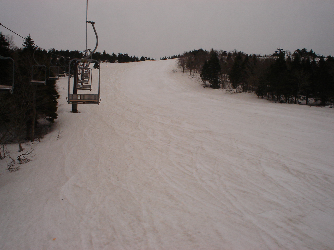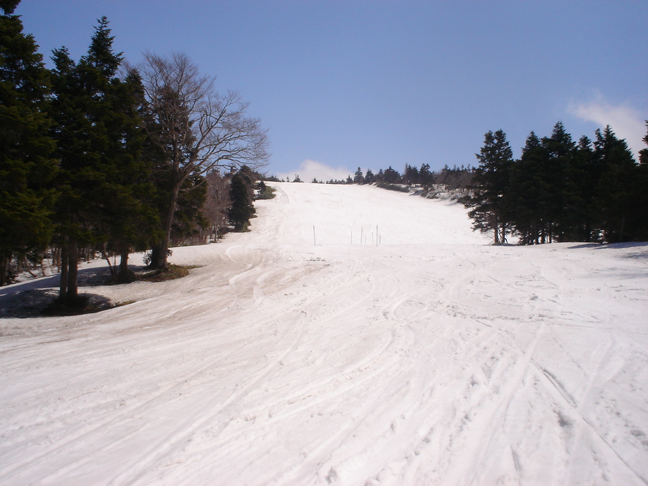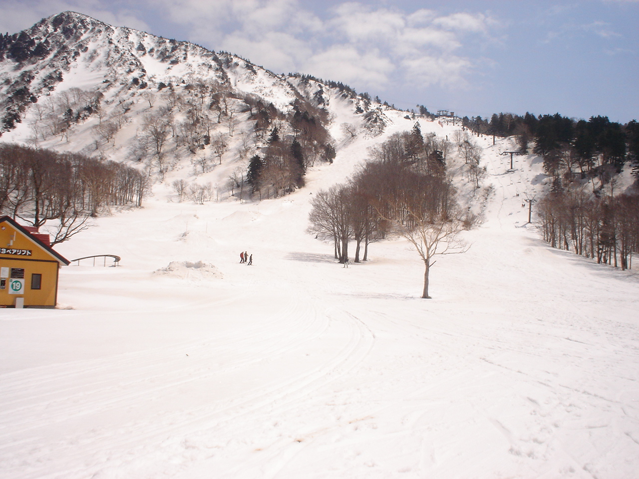 542c502e.jpgル・ベール蔵王玄関前10度曇、蔵王ロープウエー地蔵山頂駅2.8度・強風・曇、ザンゲ坂・パラダイスゲレンデを滑りユートピア第2リフトで滑りました。黒姫第1クワット昨日で運転終了したと山麓駅で聞きました。「昨夜山形市内の夕食会で黒姫からユートピアに行く案内板が黒姫リフト降りたところにあるが肝心の滑っていったところに無いので百万人ゲレンデに行ってしまうと話になり、K先輩(東校山岳部OB)・日本一の銀行山形所長(シーズンパスで32日1.500ポイント1日当たり47ポイント乗車)と蔵王河童で誰が蔵王ロープウエーに言うかと喧喧諤諤になりました。我々は分かりますが県外のお客様の為にもユートピアへの連絡口に矢印と看板が必要との結論になりました。」地蔵山頂から横倉山麓駅迄約9キロ滑り降りました百万人ゲレンデは残雪が多かった。大森ゲレンデ入口付近2箇所土が出そうで、明日は滑れなくなりそうです。次に地蔵山頂からザンゲ坂⇒パラダイス⇒大平⇒サンライズゲレンデまでの約6キロ滑り降りました。まだまだ残雪が多く少なくとも今週末までは滑り降りれます。蔵王大露天風呂入口で見ていましたら、修理がほぼ終わり19日オープン出きると関係者が話してくれました。かもしか大橋を歩いて渡り中森ゲレンデを数十メートル滑りル・ベール蔵王へ帰りました。夕方になり山頂温度が低くなり強風が吹いてきたので雪が降ると思われます。天気予報では明日から2日雨との事です。写真はユートピア第2リフトのゲレンデです。残雪が多くゴールデンウイーク迄滑れそうです。