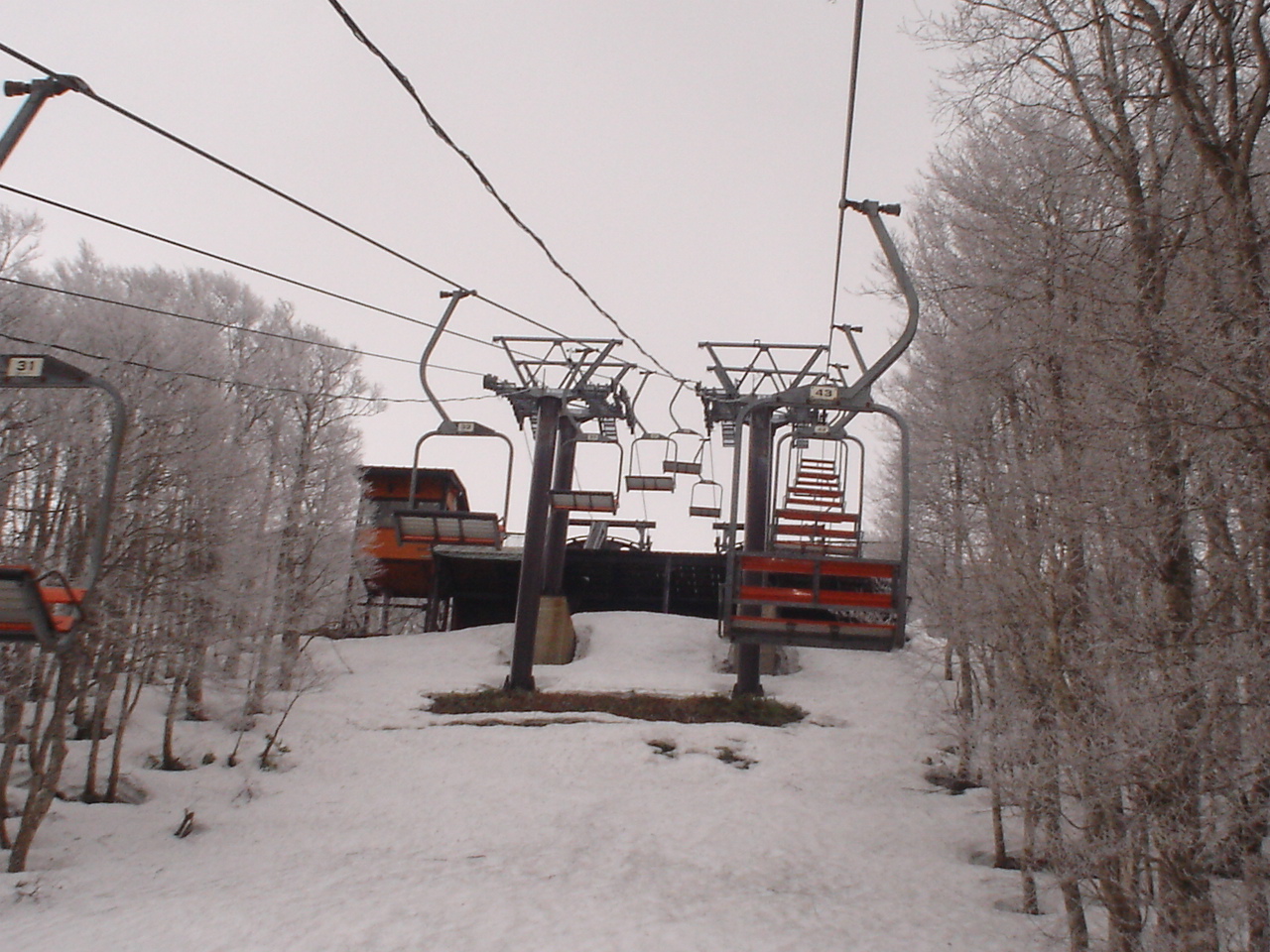 2f22d0ed.jpgル・ベール蔵王玄関前2度、1.300m以上濃霧、蔵王中央ロープウエー暴風の為定員半分の51名で運行(ウェイト吊下げ)鳥兜山のブナ林新芽が赤く色ずいていたが1.300m以上霧氷で真っ白、赤と白コントラストクッキリ綺麗でした。鳥兜駅0度ピューピューと風の音、鳥兜リフトアイスバーン・三五郎リフト・片貝リフトも運転、ゲレンデはアイスバーンでカタカタザーザーと滑る音が響いていました。写真は三五郎リフト上降り場付近の霧氷です。冬と変わらない出来映えです。今日滑りに来た方は大喜びでスピードを出して滑っていました。冬に逆戻りで昼頃地蔵山が見えるようになりましたが真っ白でした。スキーヤー50名位滑っていました。ハイムの校長岸全日本スキー連盟技術員が教えていました。平日なのにヘルメットをかぶったジュニアのアルペン選手をコーチが引率して2組滑っていました。春のスタイルで滑りに行ったので地蔵山頂方面寒すぎるので行きませんでした。風が強く凍えるような寒さの中滑ってきました。4月25日開通した蔵王エコーライン5月8日迄道路凍結の為夕方5時〜翌朝8時迄通行止になります。普通タイヤの方は朝10時過ぎより夕方4時以前にお通りください。