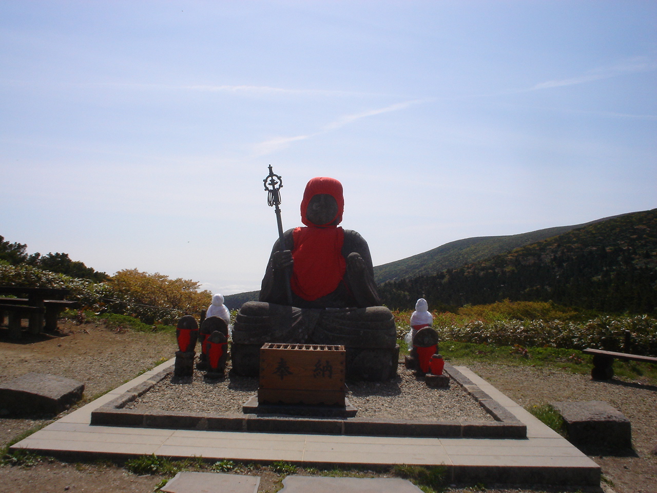 be27515d.jpgル・ベール蔵王玄関前17度・曇、庭から見える横倉山・竜山濃霧の中見えません。濃霧の関係で温度が上がらず涼しい日です。朝から蔵王大露天風呂は大混雑でさくらんぼ狩のお客様で蔵王温泉は満杯でした。写真は蔵王地蔵尊です。7小地蔵さんの内3小地蔵さん頭がありません6月24日修繕した小地蔵さんの覆いが取られます。蝦夷春ゼミが鳴かなくなりましたので梅雨に入った様です。蔵王中央ロープウエー軽々と運行しています。(乗客が少ない)