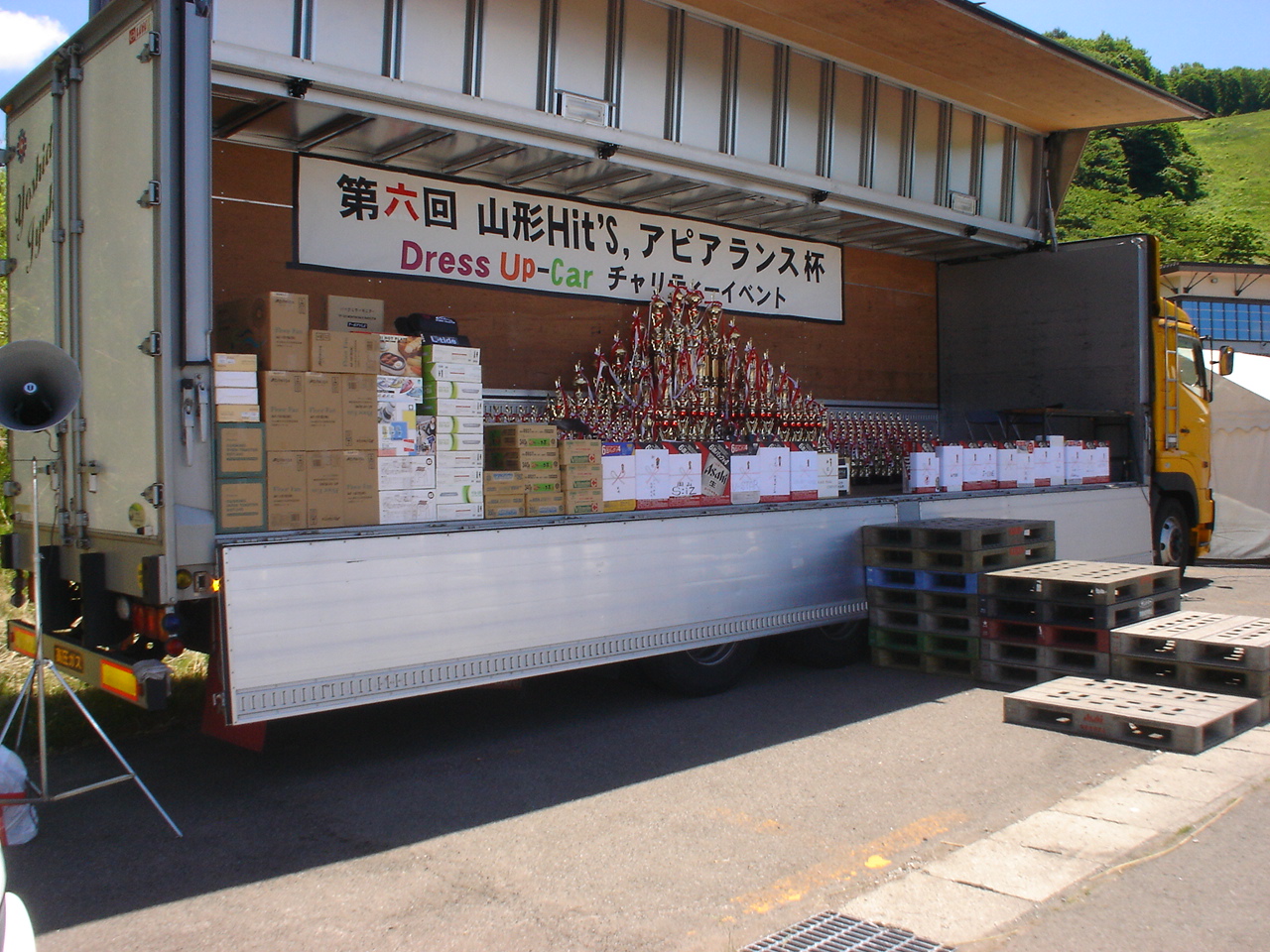 表彰式の舞台は大型トラック荷台さすが車の催しです。