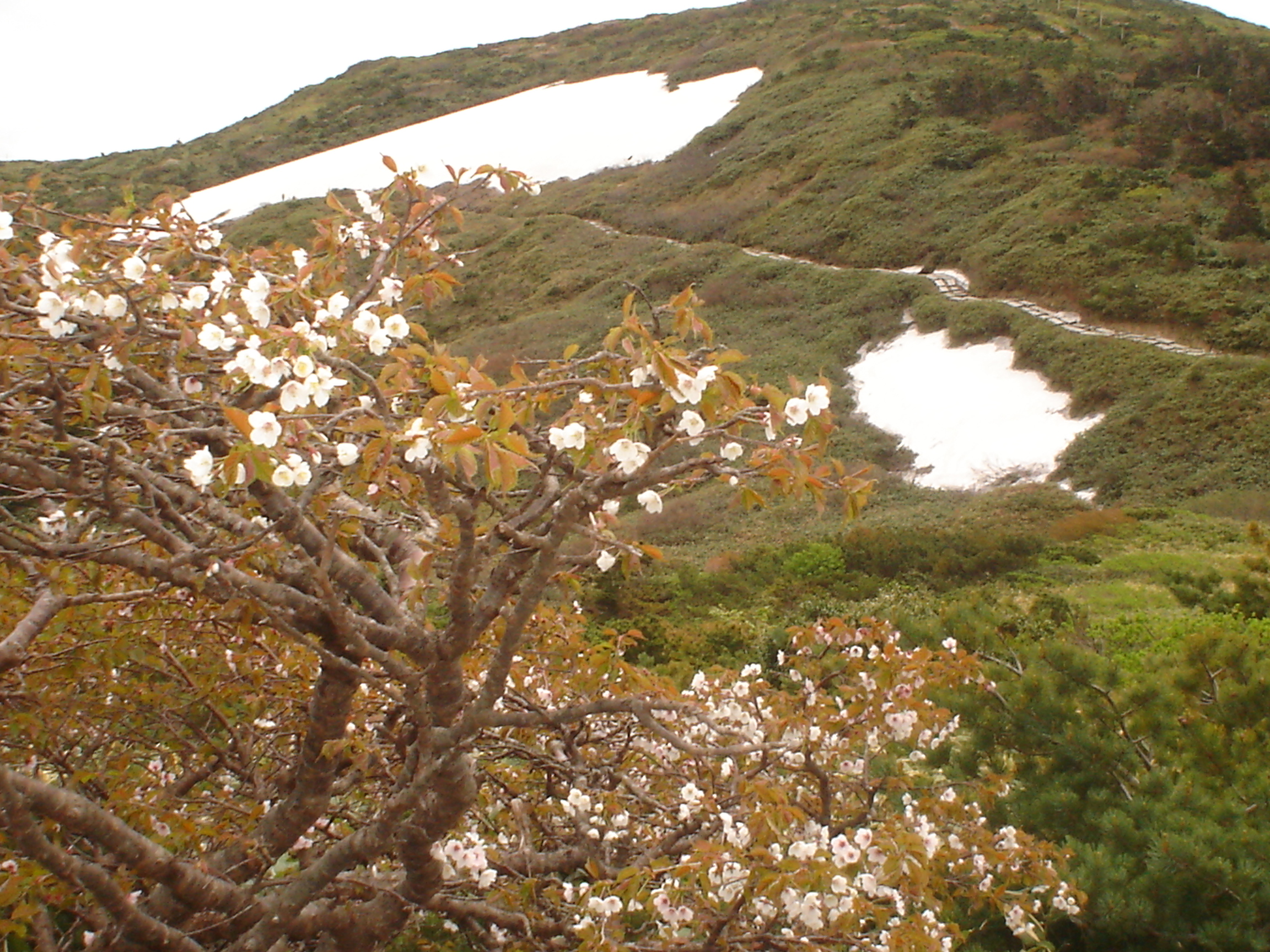 177e1afa.jpgル・ベール蔵王玄関前18度雨、蔵王中央ロープウエーで鳥兜駅、温度表示見ませんでした。林蔵王山岳インストラクターの話では15度、地蔵山頂は7度との話でした。パラダイスゲレンデで2本だけ残した巨木シリュウ桜が満開でした。五郎岳登山道で真っ白なシャクナゲが見れました。写真は高山植物イチヤクソウです。ハクサンチドリ・ドウタン・マイズルソウ・ナナカマド他一斉に開花していました。笠をさしながら散策帰りは高鳥コースを下りてきました。雨の為林インストラクターの案内で昼食は蔵王國際高原ホテルロビーで食べました。ドッコ温泉を開湯しましたまだパンフレットは出来ていないとの事でした。標高1.200m以上なので人工温泉です。ロビーに昔のスキーが展示されていました。アザラシのシールを取り付けているスキー・2m10cmのダンヒルスキー他是非ご覧下さい。