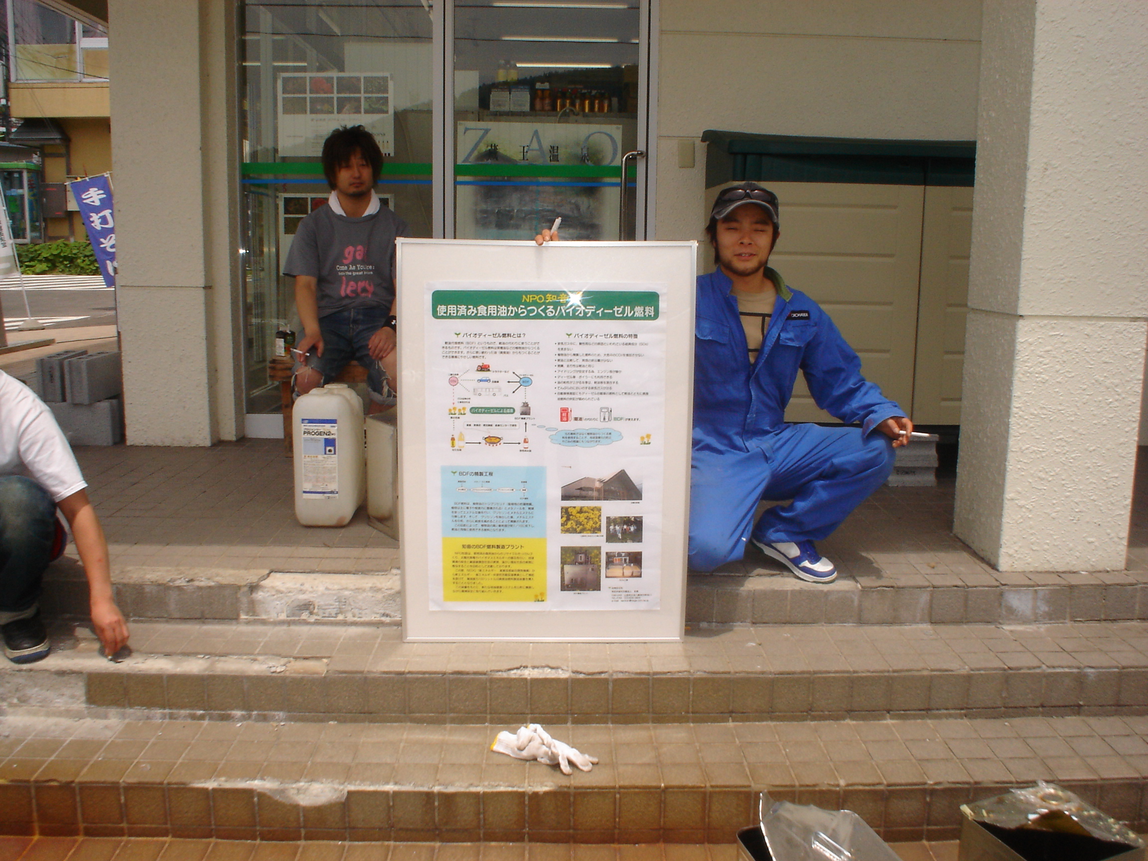 b711f95b.jpg蔵王温泉観光協会青年部メンバーが収集のプレハブ設置し休息している所へ行き、看板を写させて貰いご本人にブログへ掲載すると承認いただいた写真です。御宅・ホテル・旅館・民宿・レストラン・食堂等でお捨てになるテンプラ油をフィルターで濾してタンクに入れて下さい。